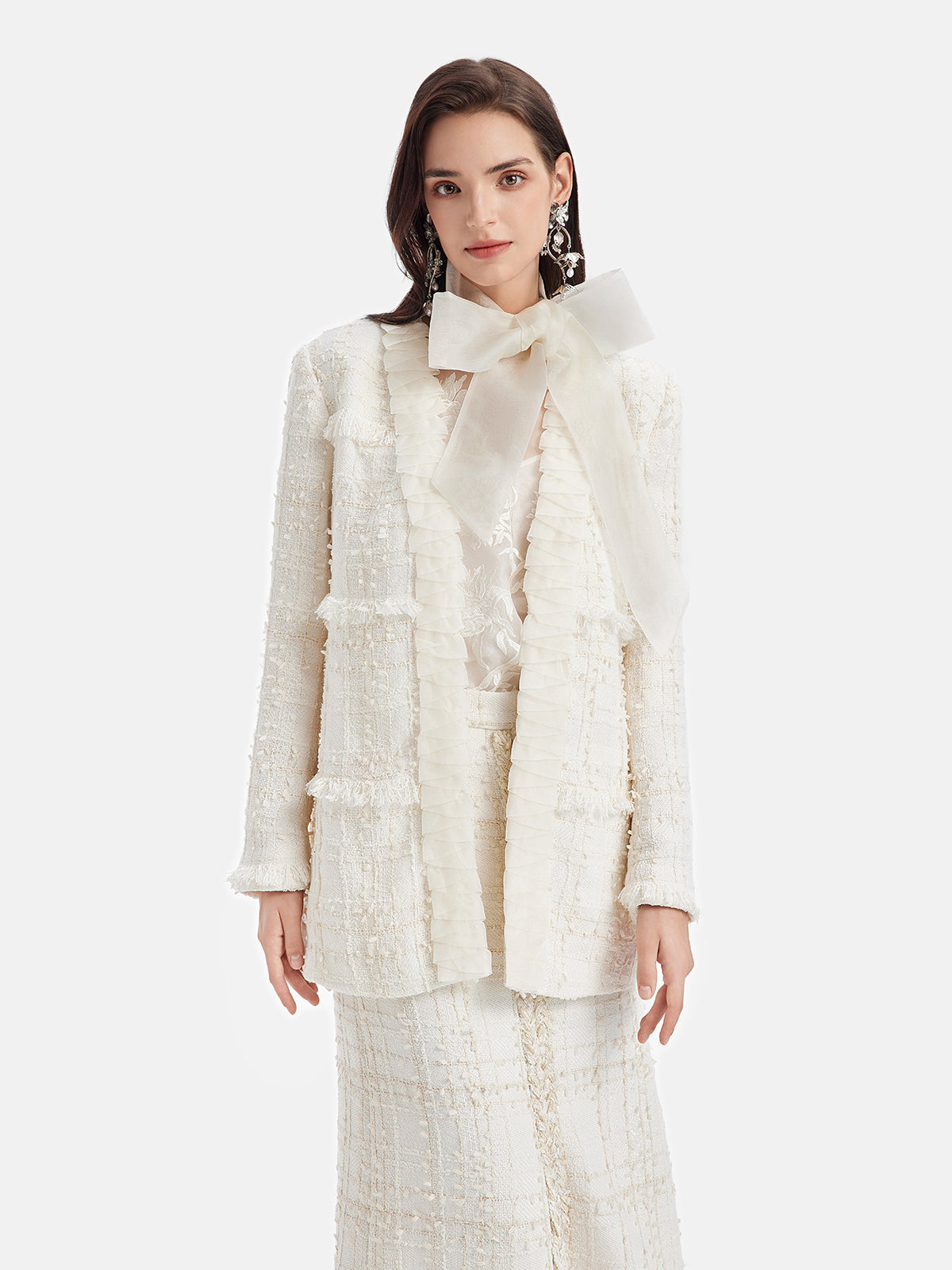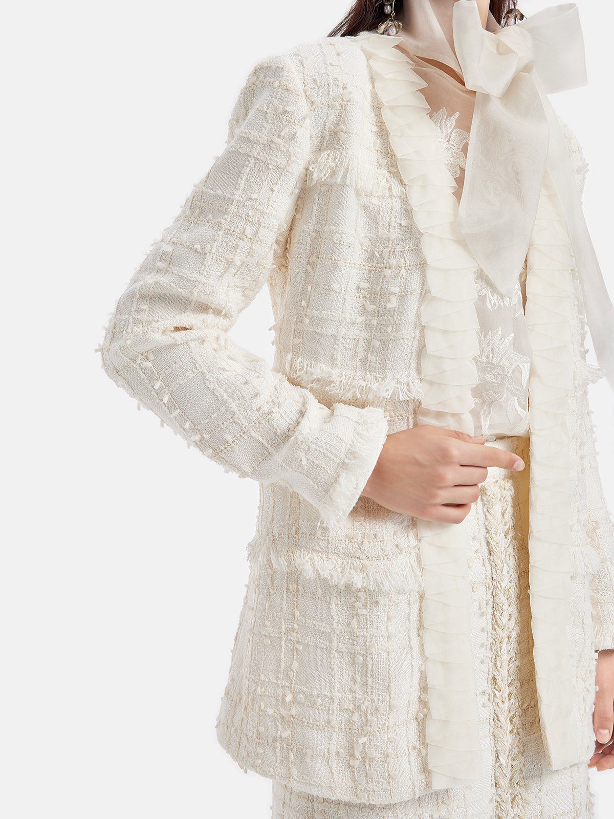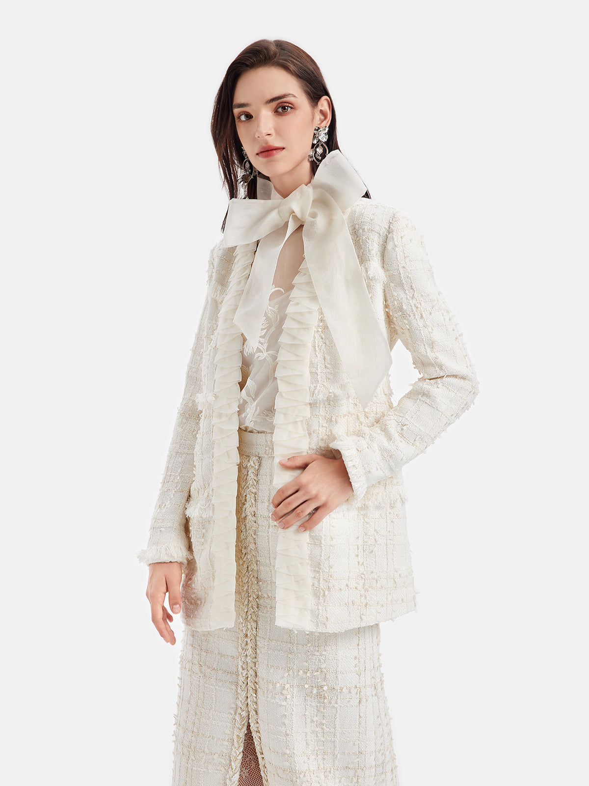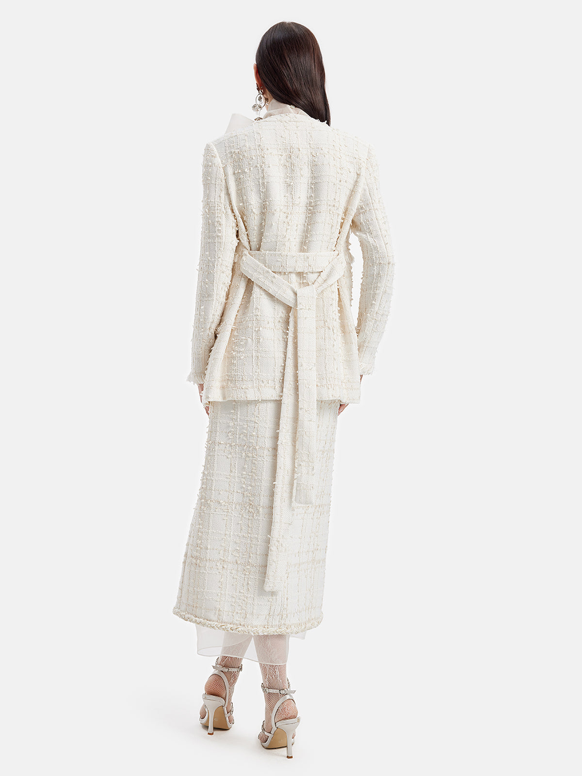 Fransız Simli Tüvit Fırfırlı Uzun Kaban