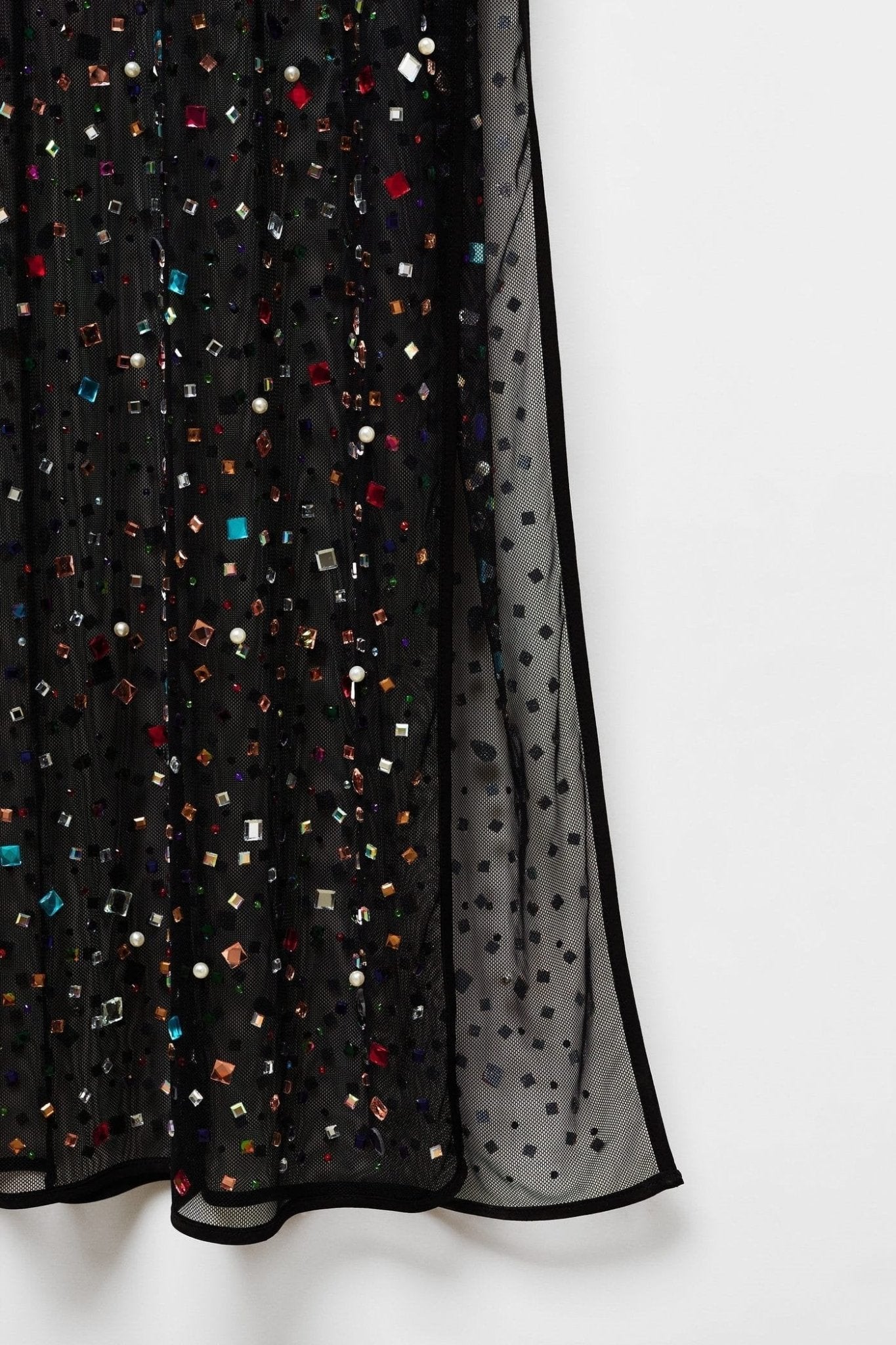 Glam Zarif Panelli Tül Uzun Kollu A Kesim Maxi Elbise