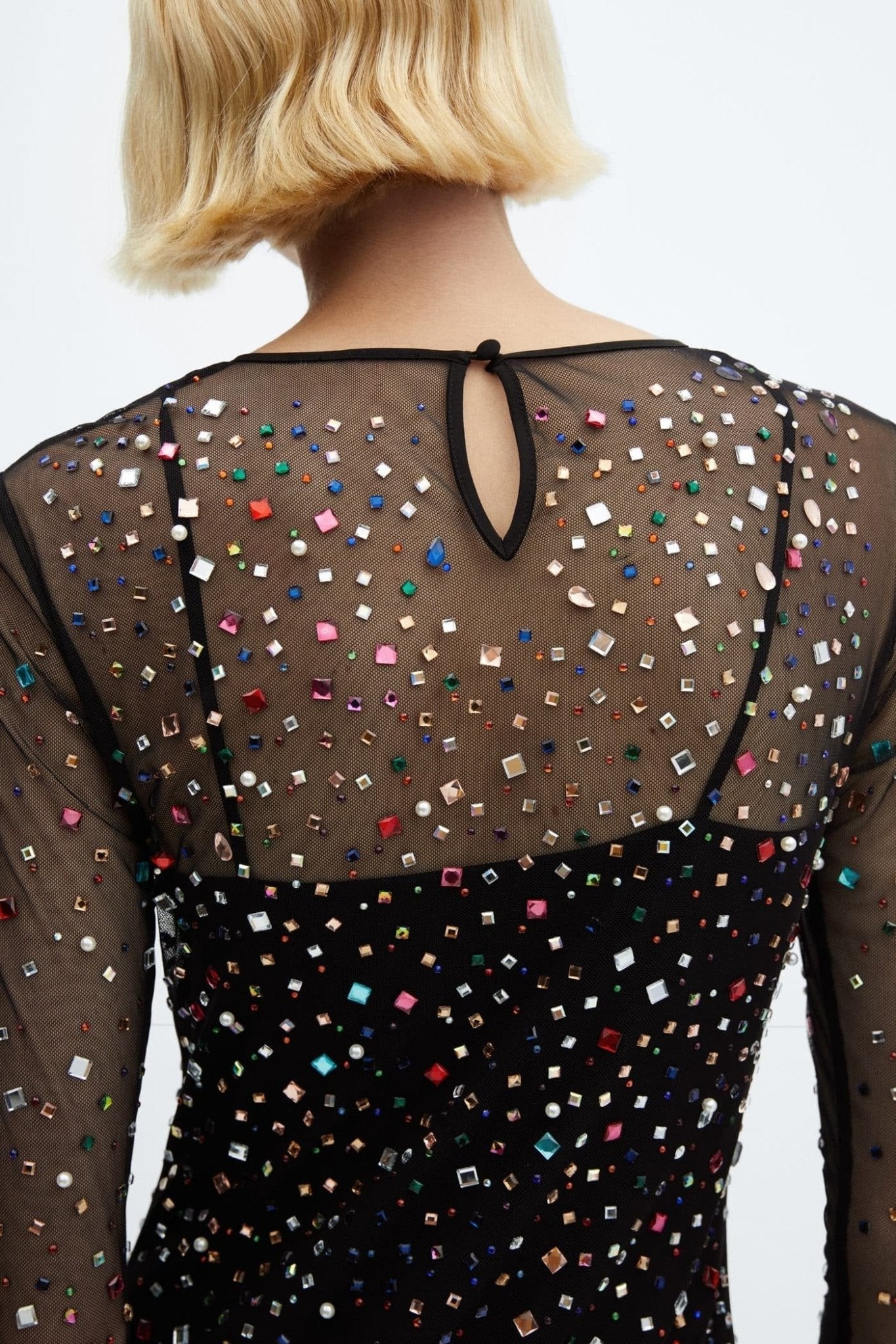 Fanny İşlemeli Payetler Sırtı Açık Mini Elbise