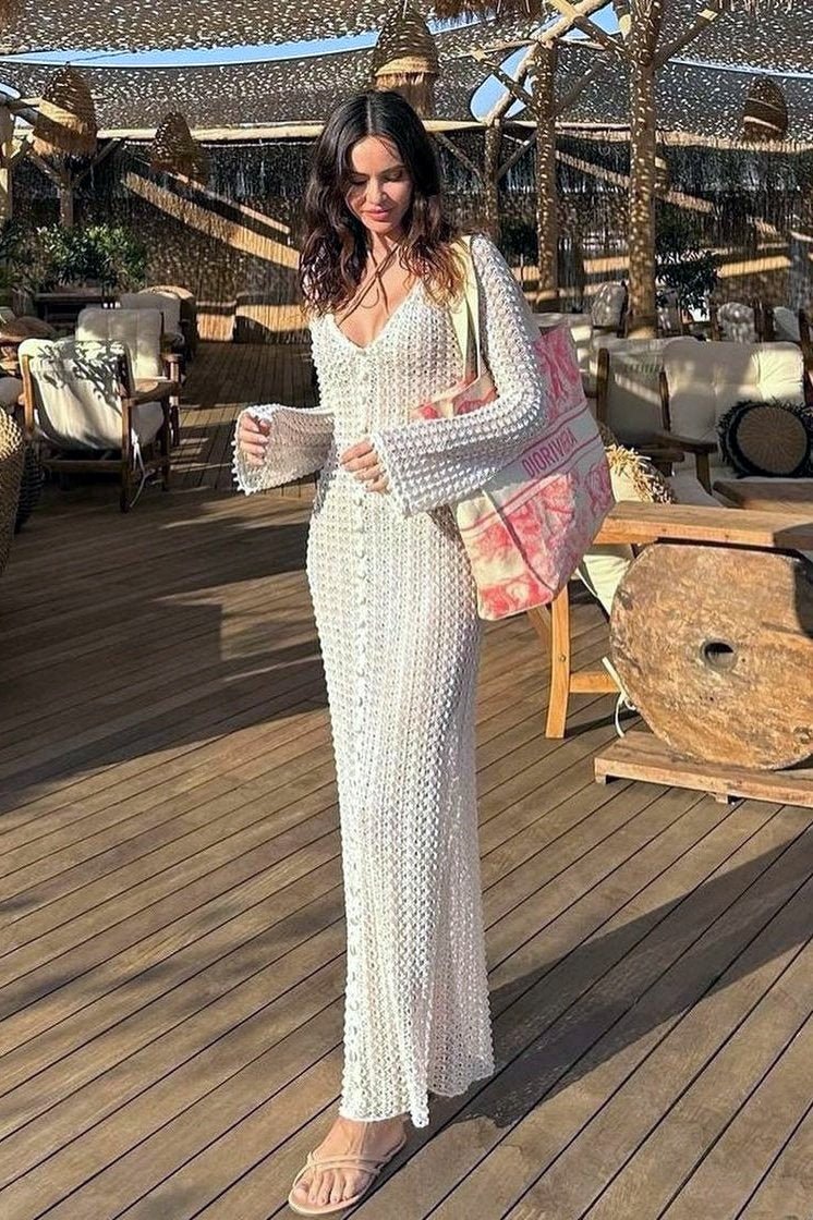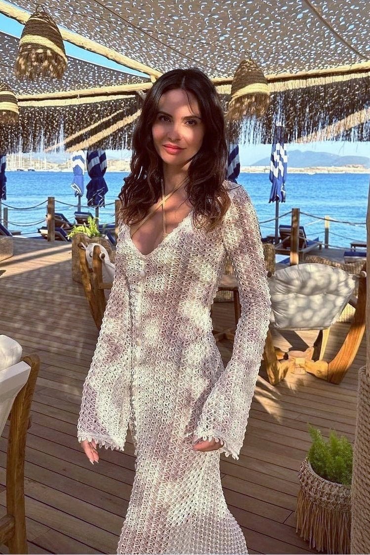 Georgia V Yaka Tığ İşi Maxi Elbise