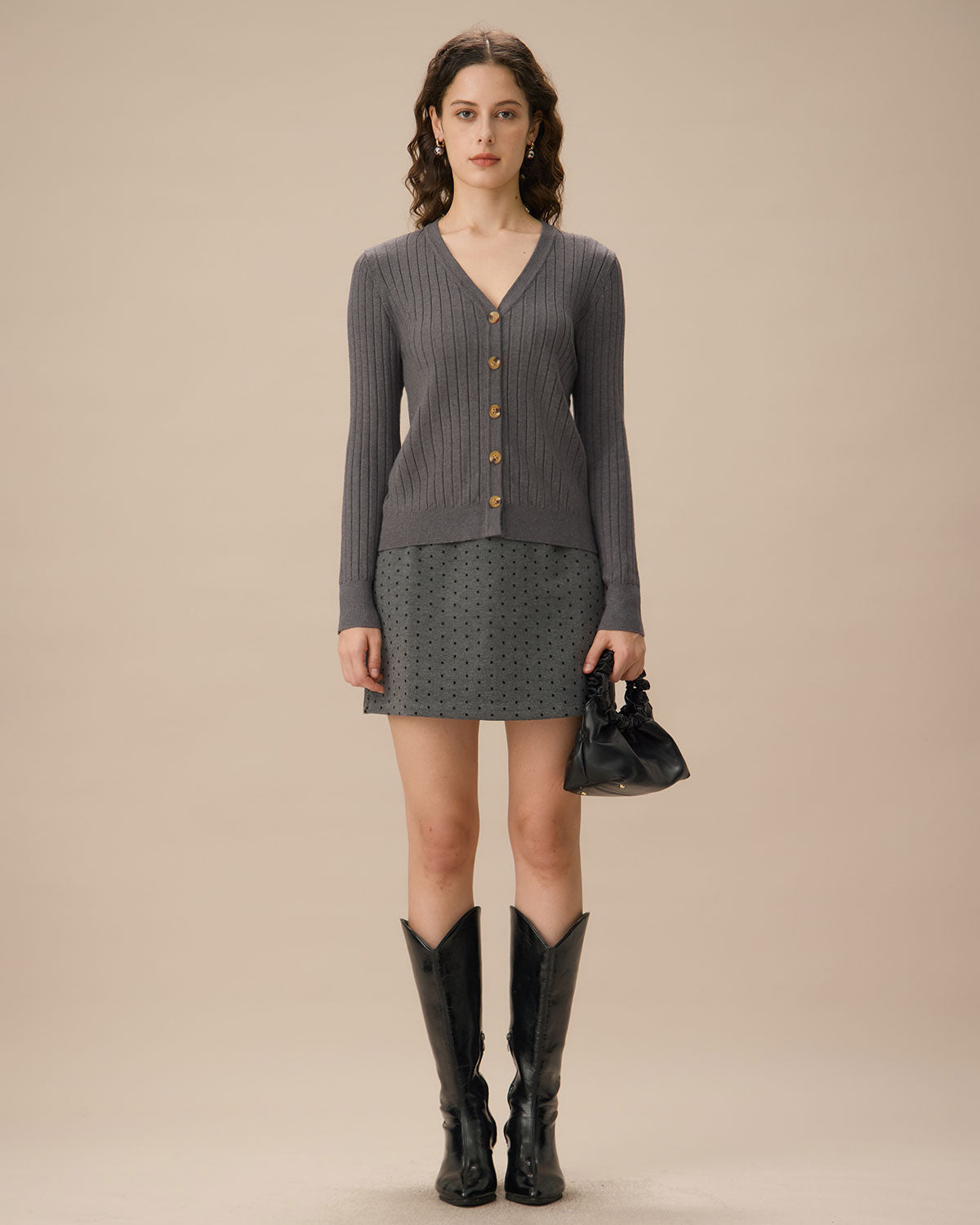 Gri V Yaka Tek Düğmeli Hırka