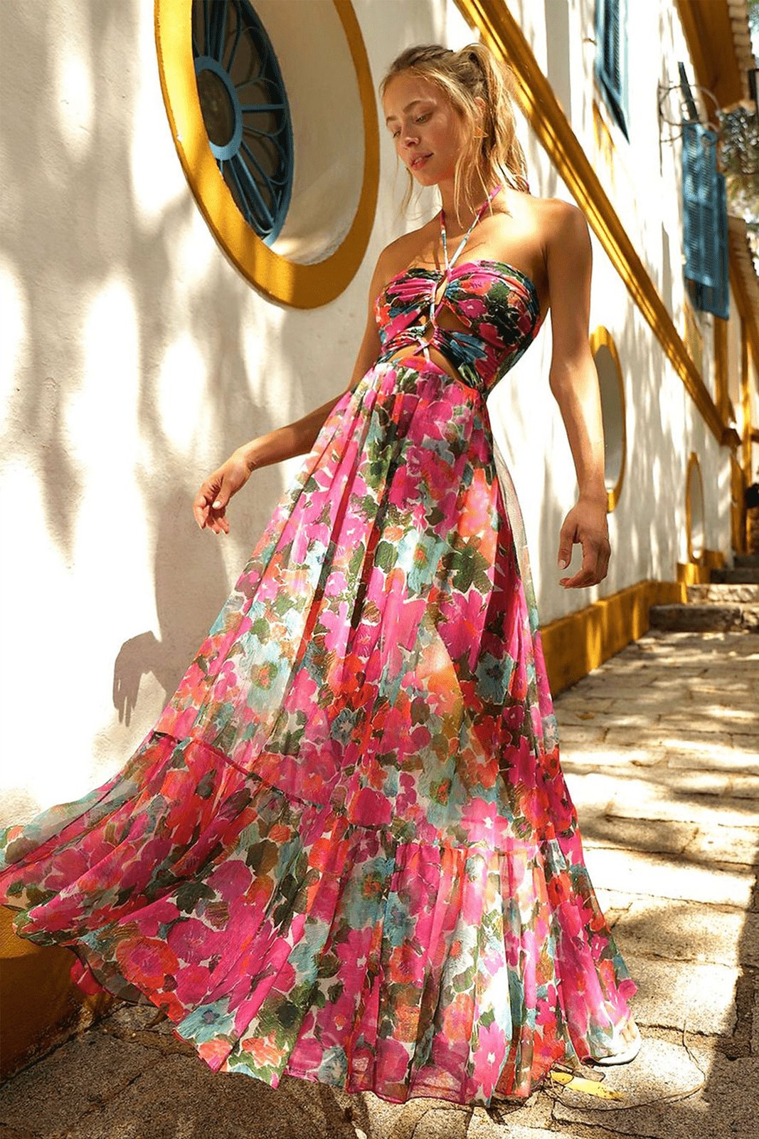 Gloria Paisley Baskılı Fırfırlı Uzun Elbise