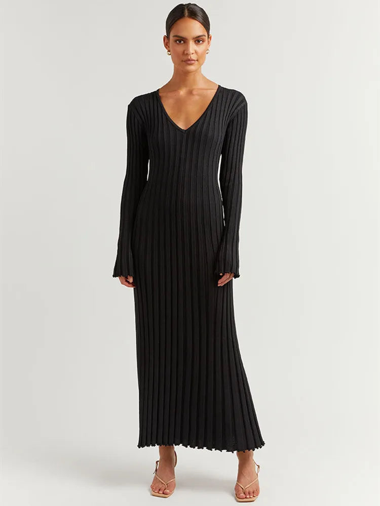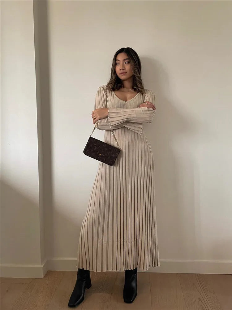Eloise Uzun Kollu Fiyonklu Maxi Elbise