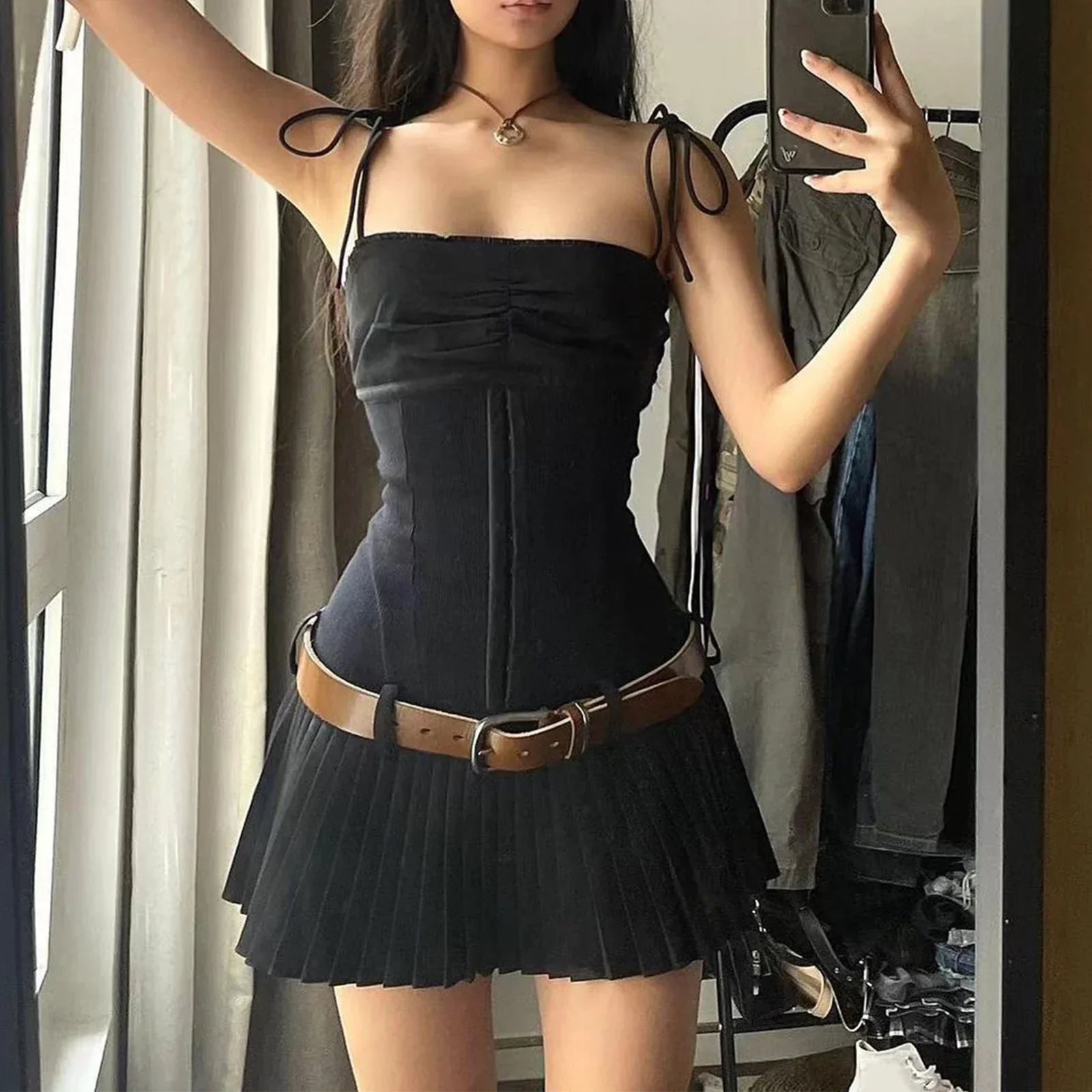 Spagetti Askılı Zarif Pileli Elbise