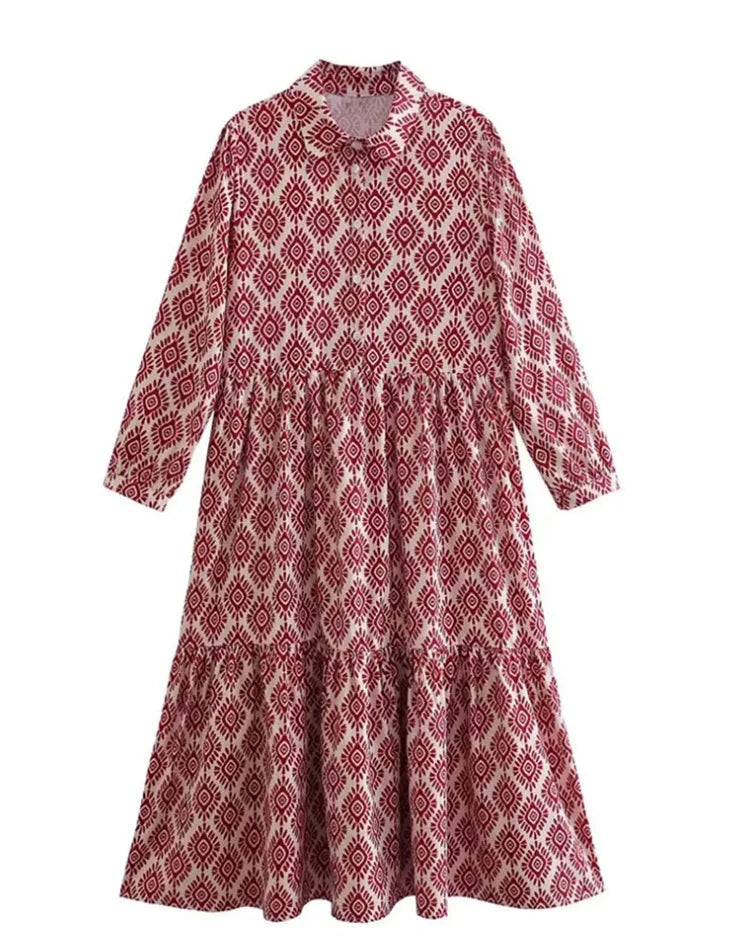 Gloria Paisley Baskılı Fırfırlı Uzun Elbise