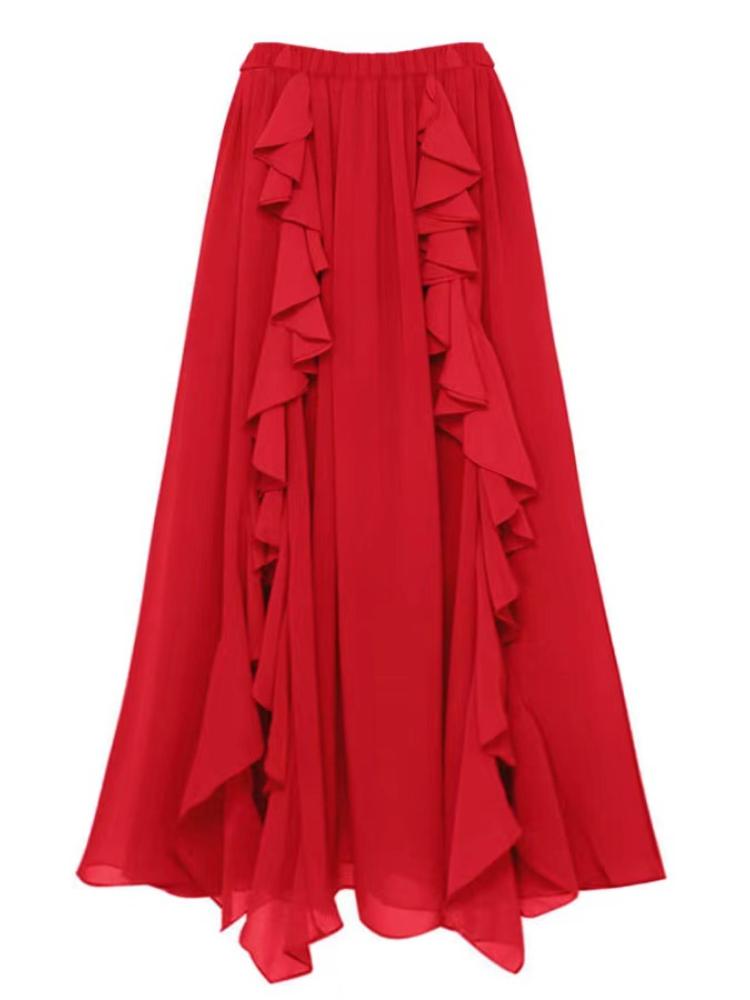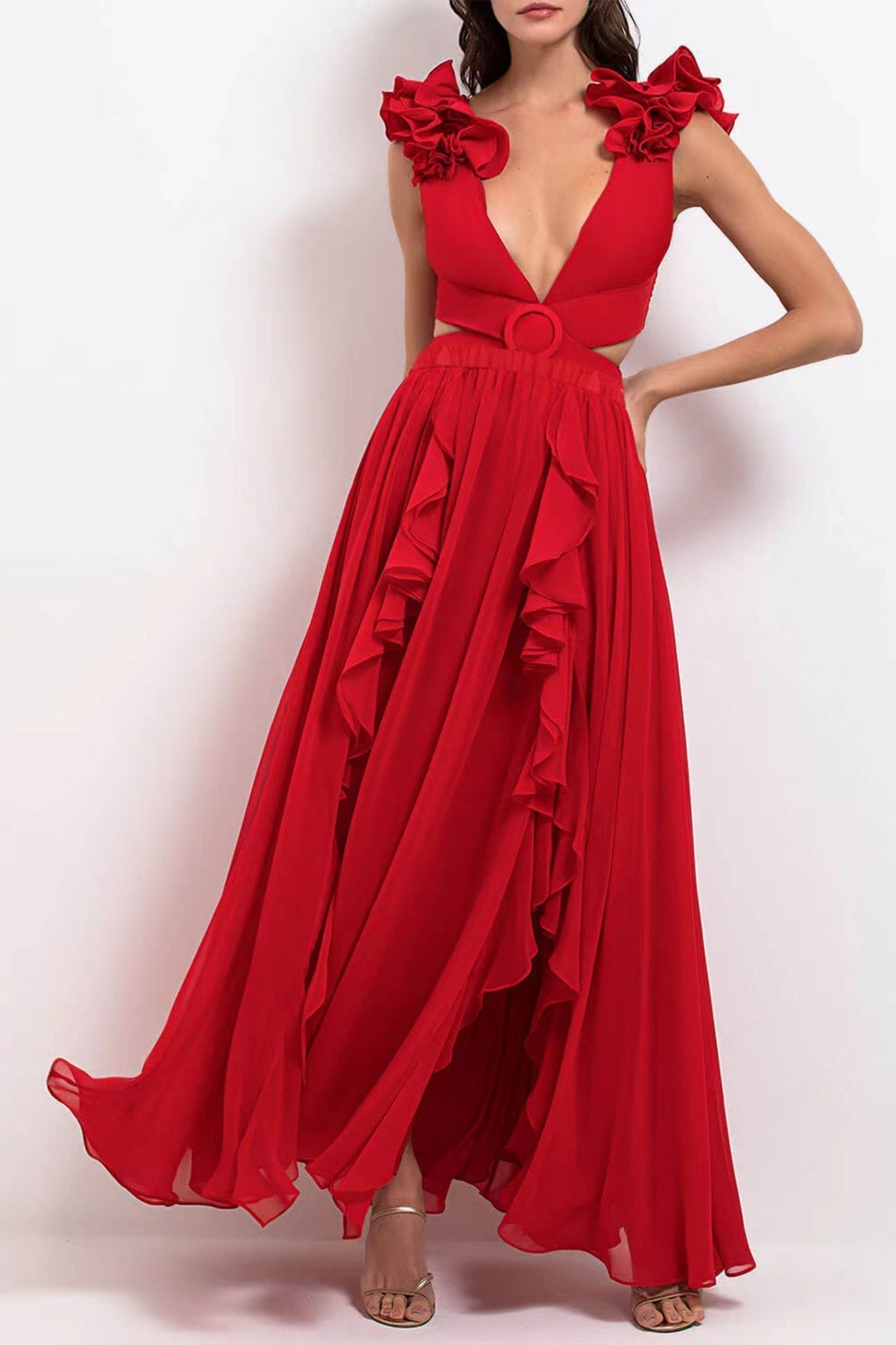 Gloria Paisley Baskılı Fırfırlı Uzun Elbise