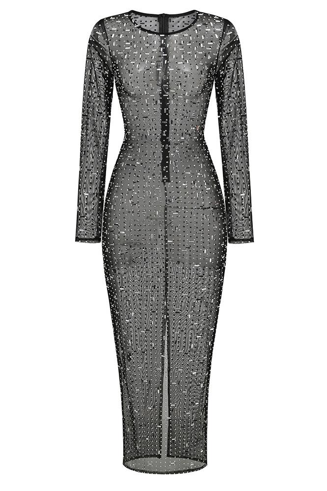 Nina Çiçek İşlemeli Payetler Maxi Elbise