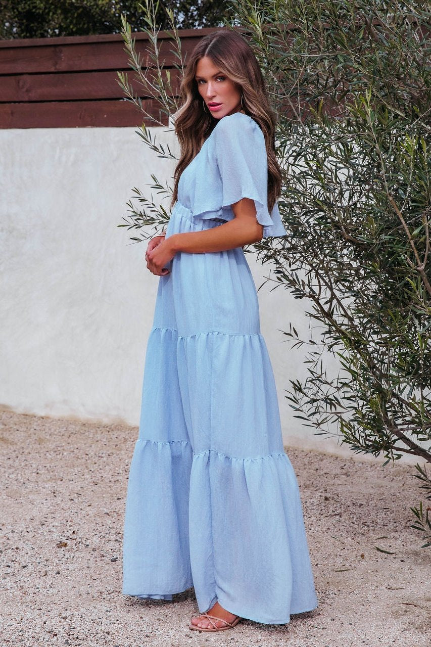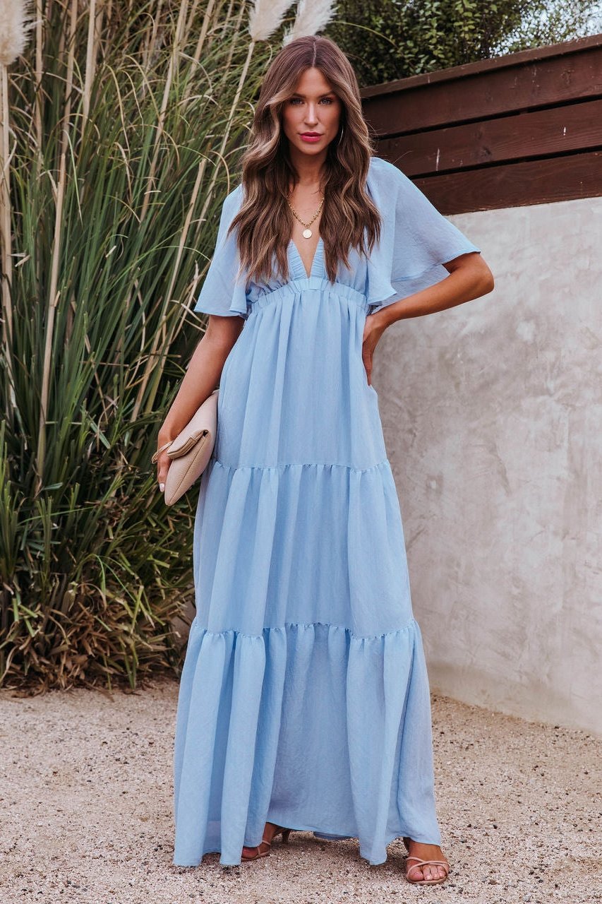 Irma V Yaka Sırtı Açık Uzun Elbise