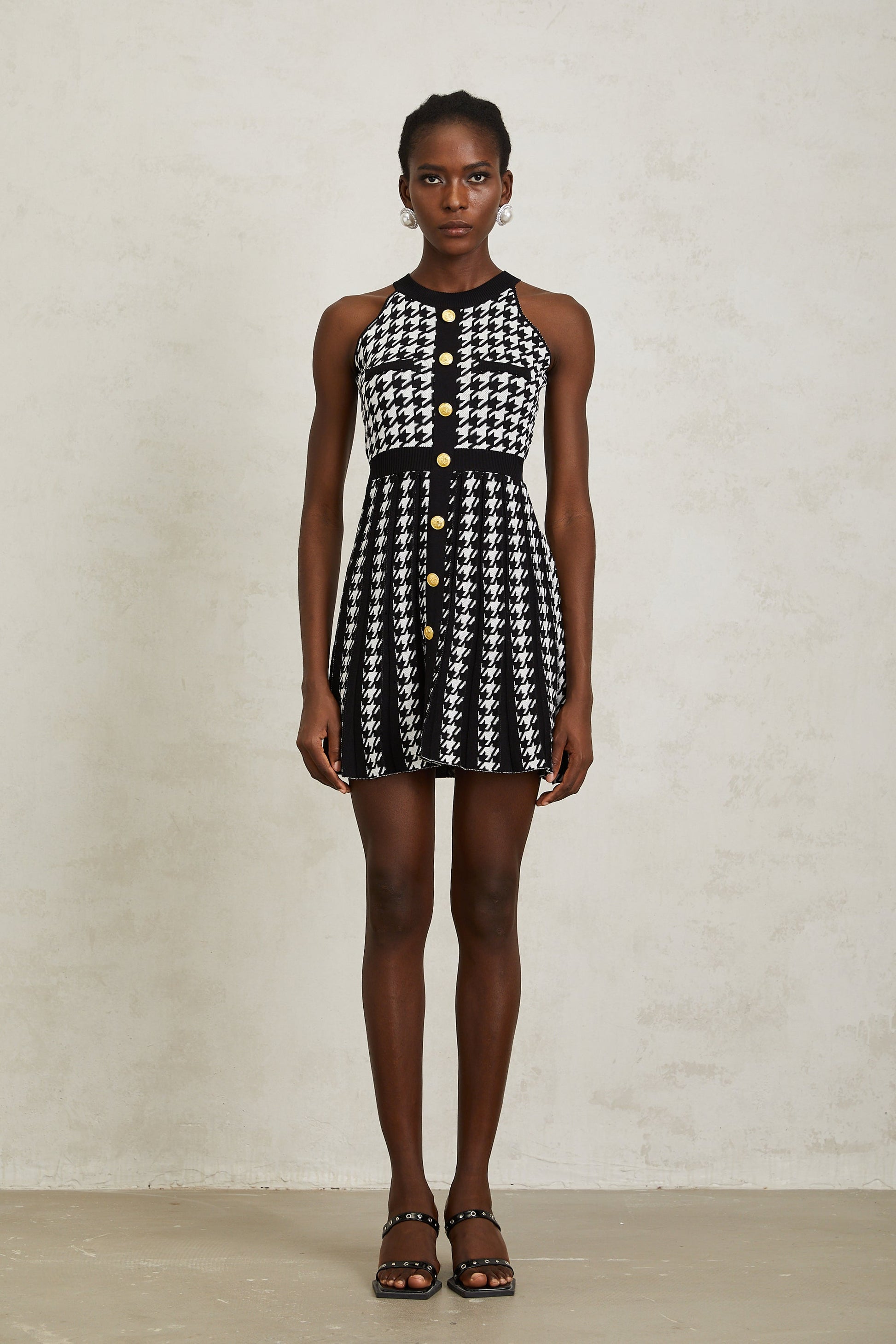 Jacqueline Siyah Balıksırtı Kroşe Örgü Mini Elbise