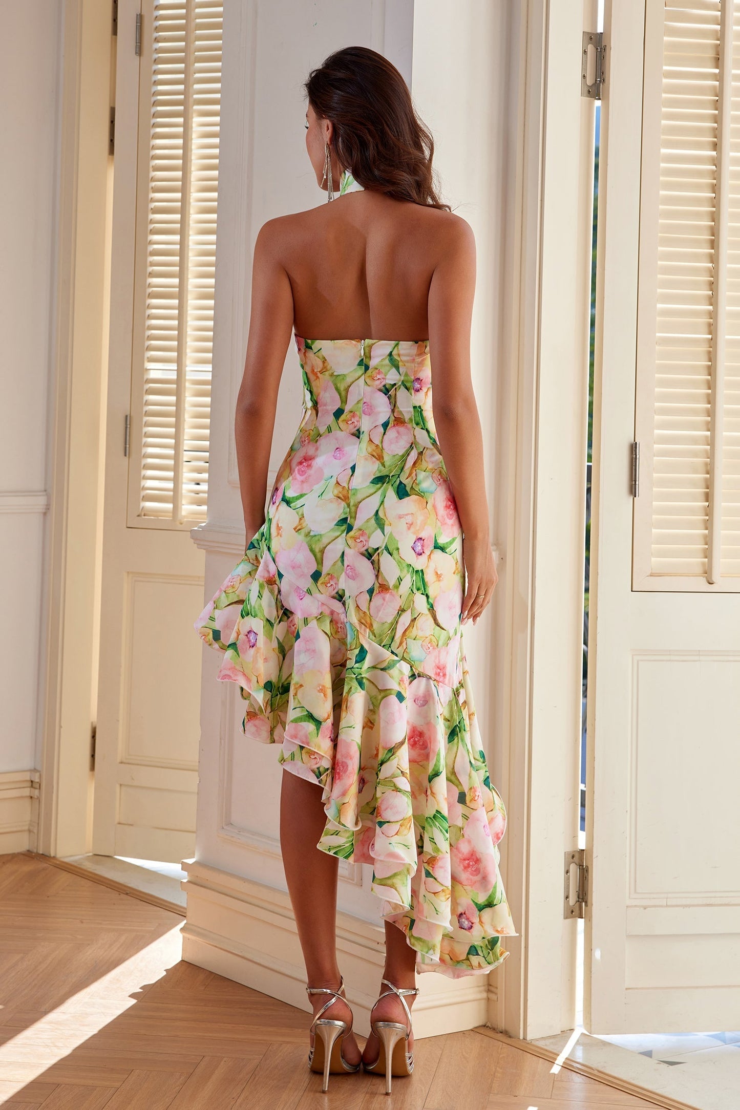 Jeanne Çiçekli Fırfırlı Boyundan Bağlamalı Mini Elbise