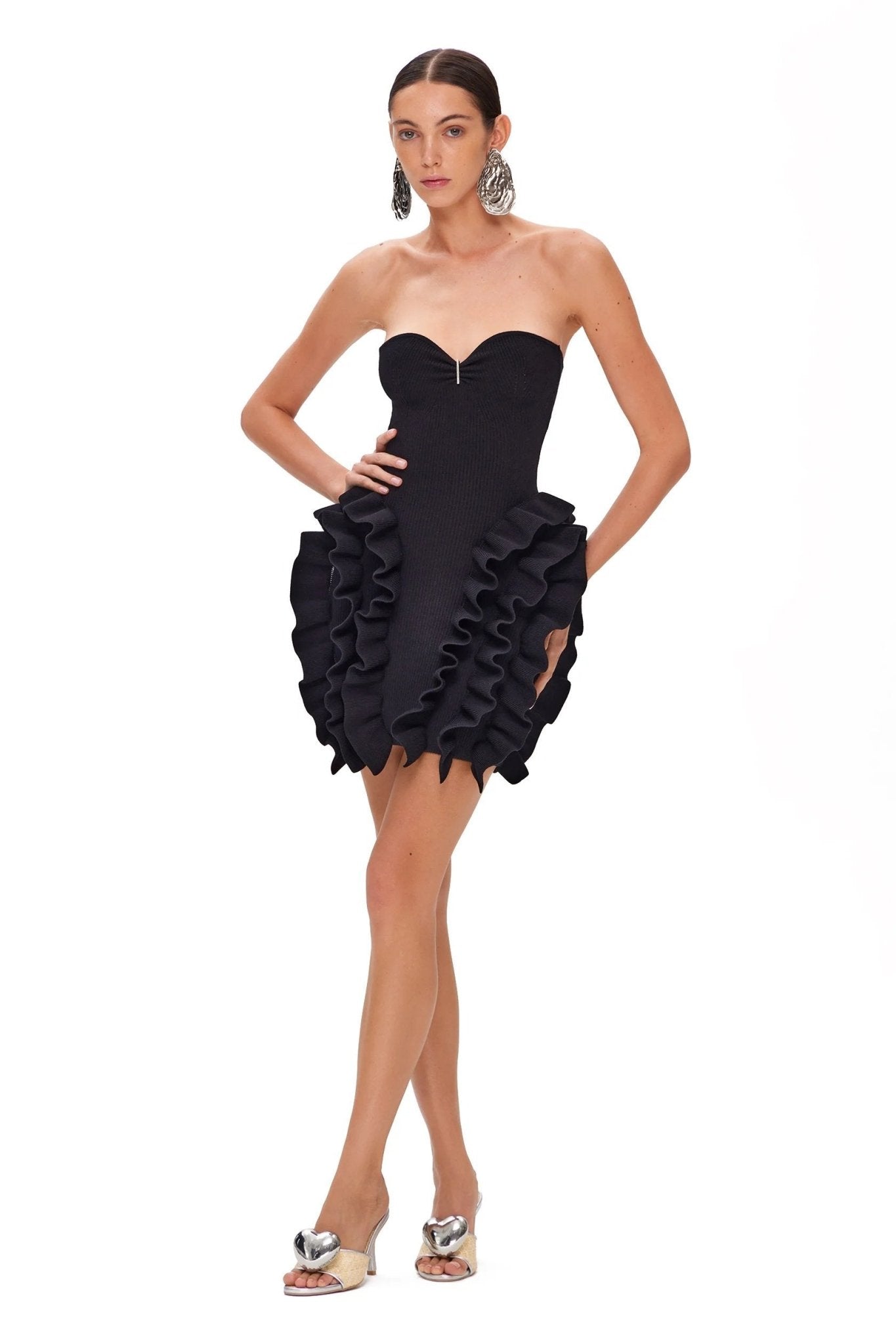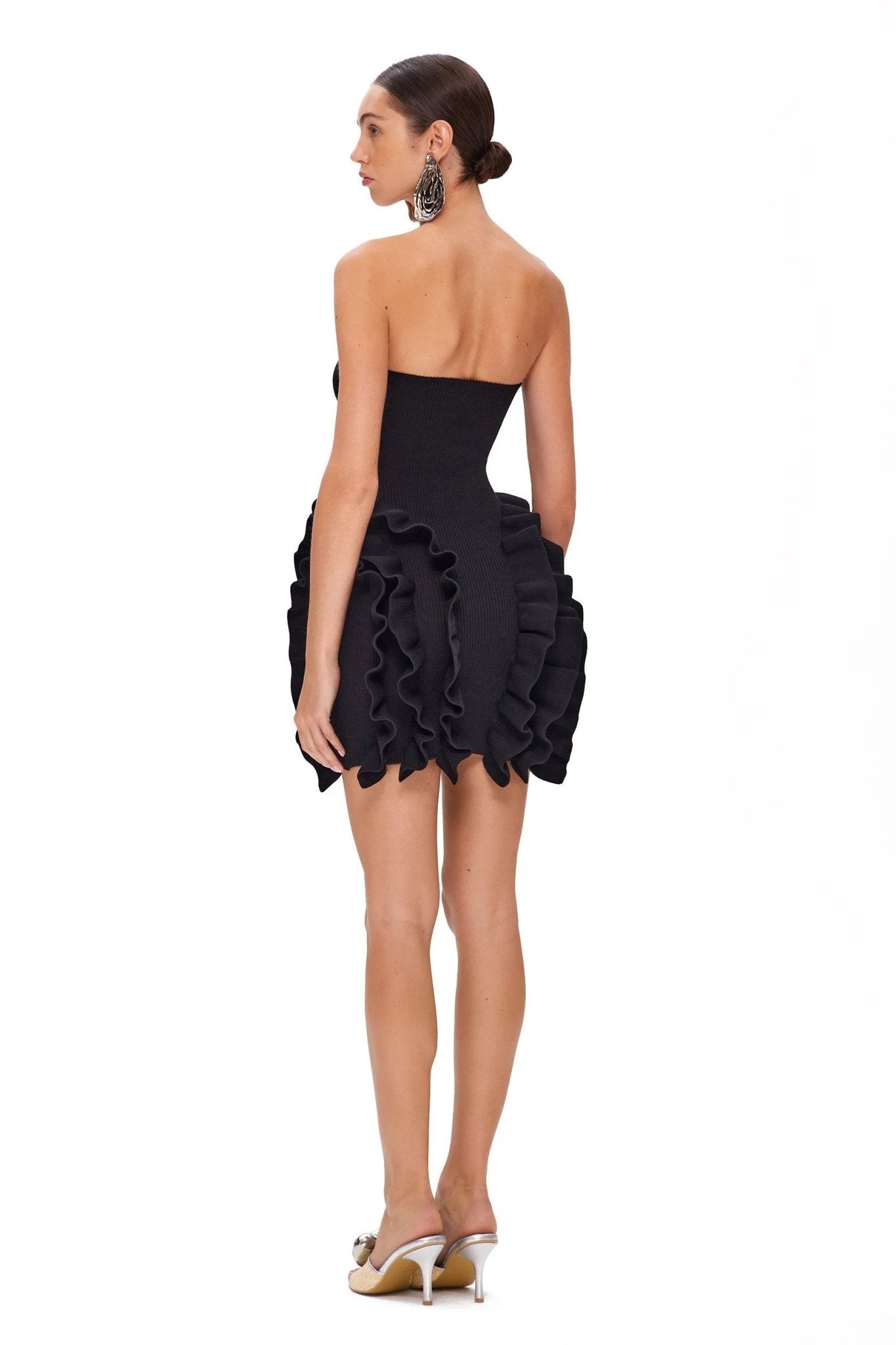 Jenny Straplez Fırfırlı Triko Mini Elbise