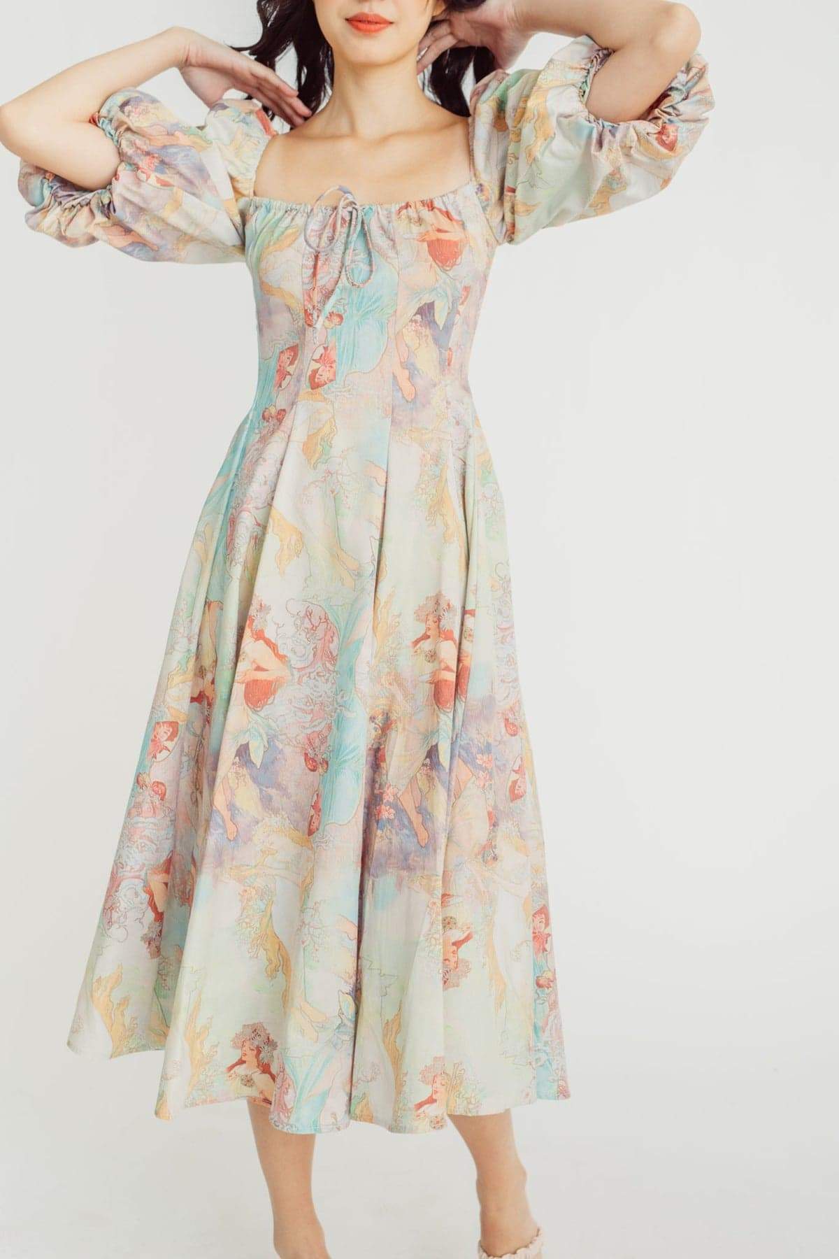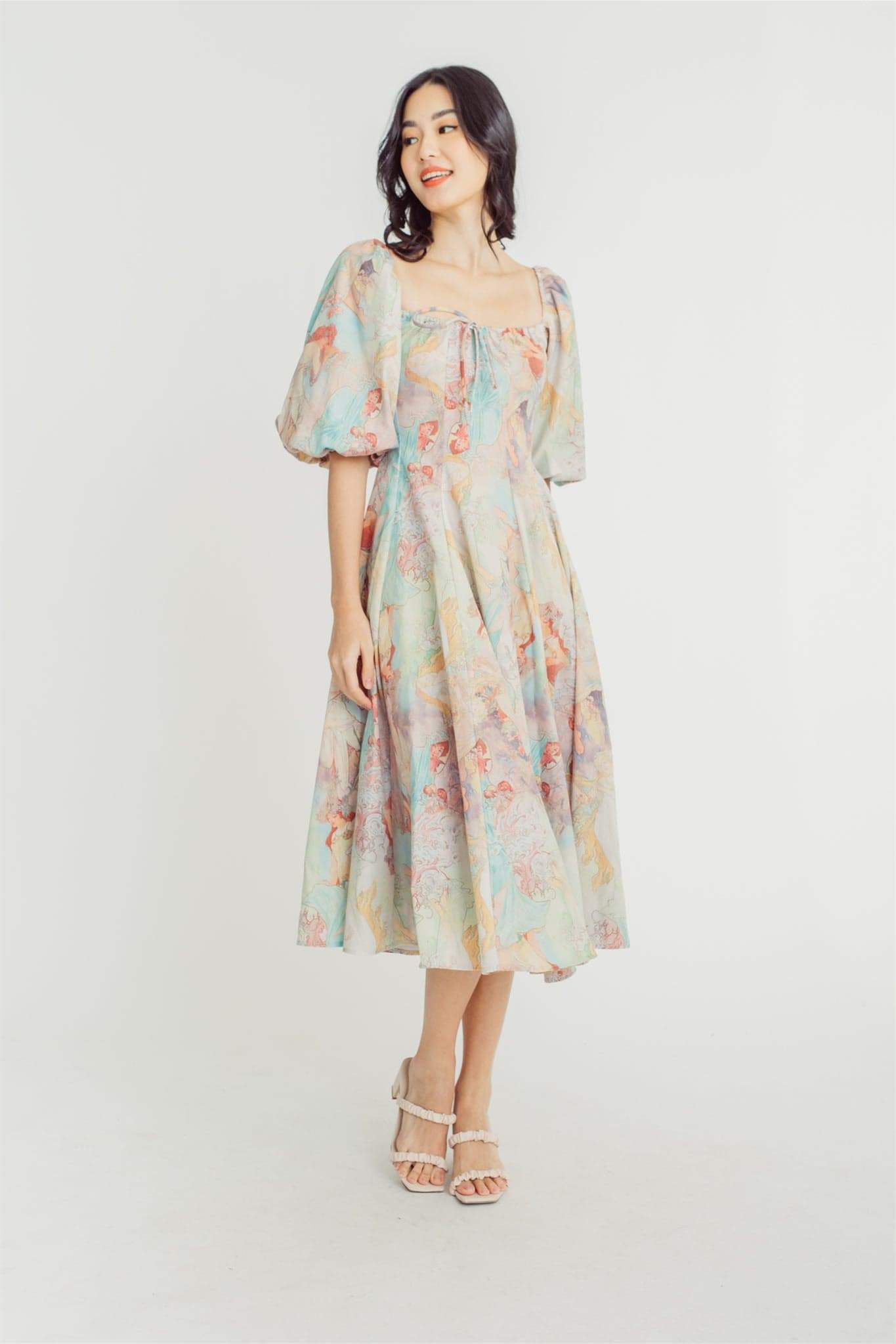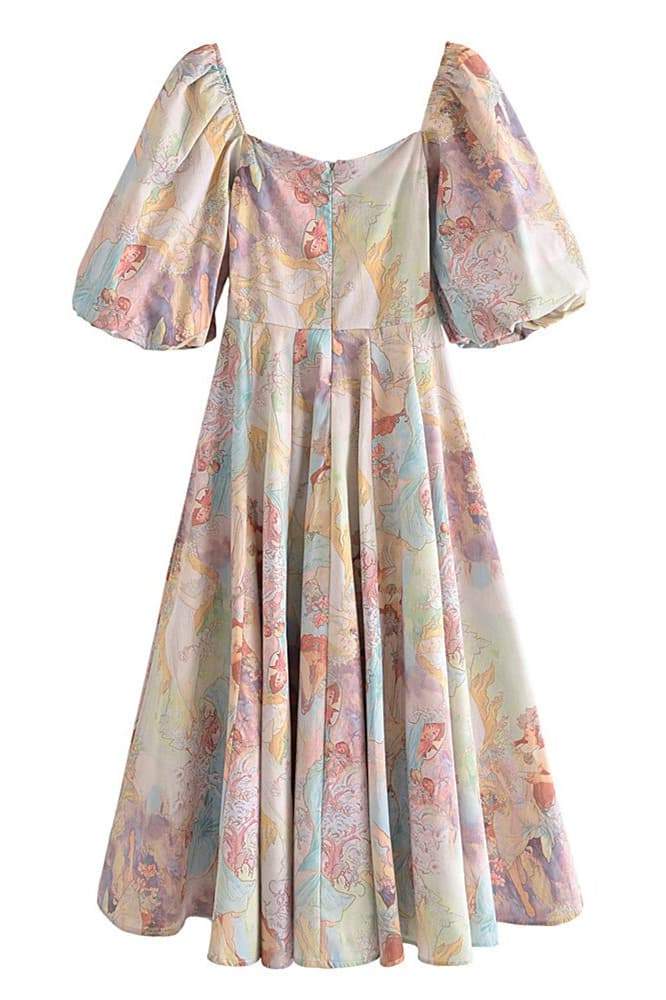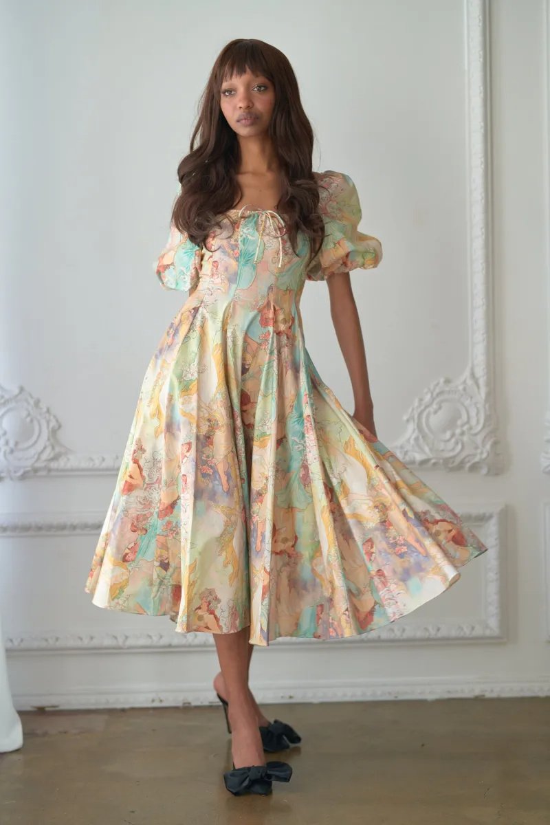 Joyce Baskılı Fener Kollu Midi Elbise