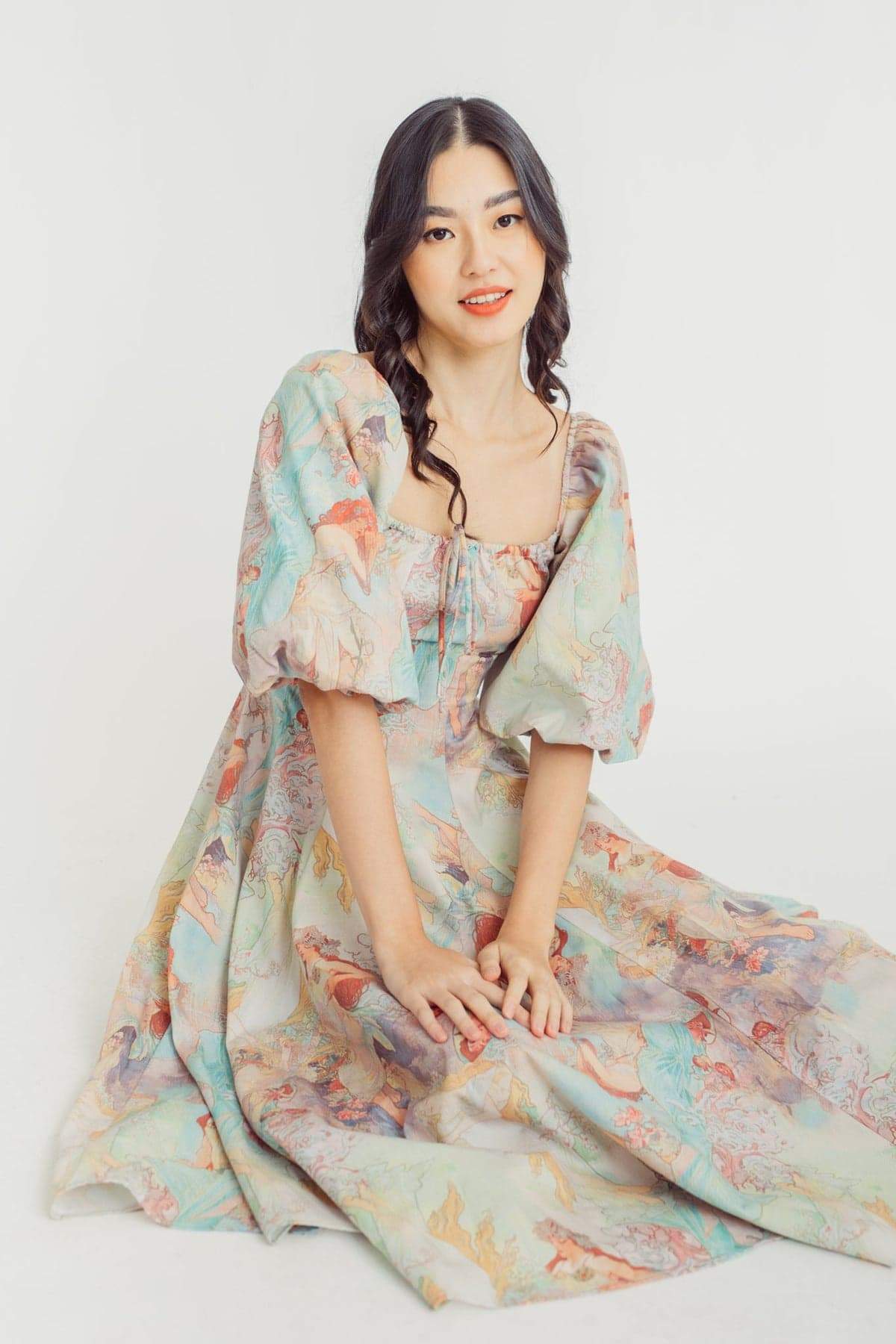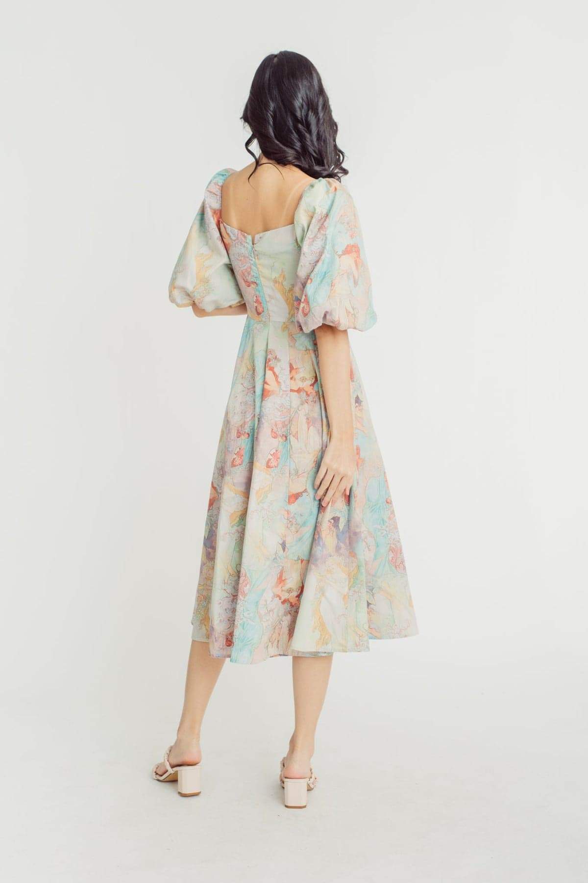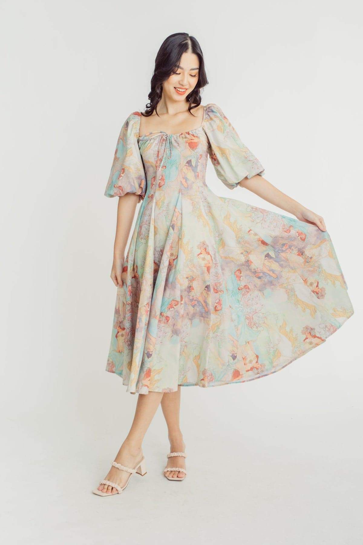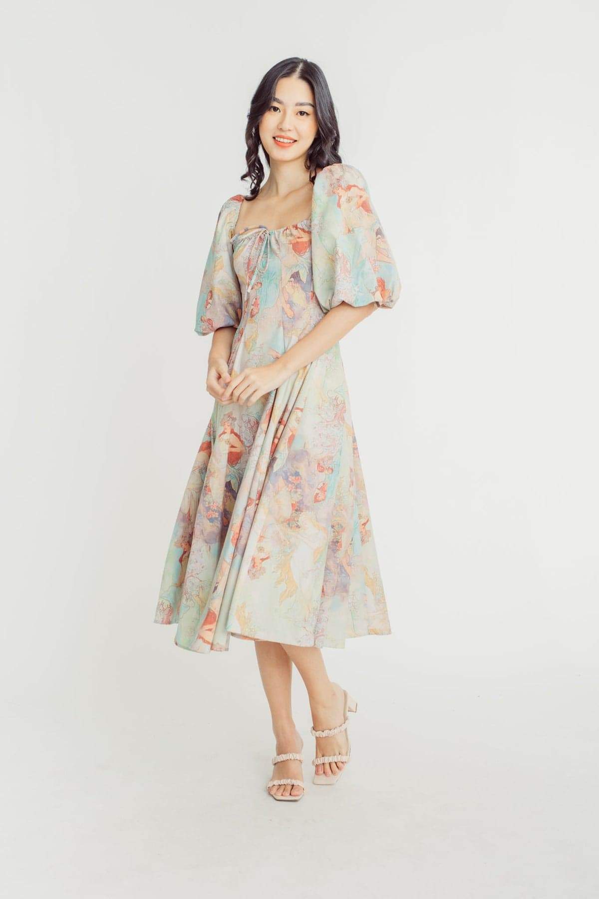 Joyce Baskılı Fener Kollu Midi Elbise