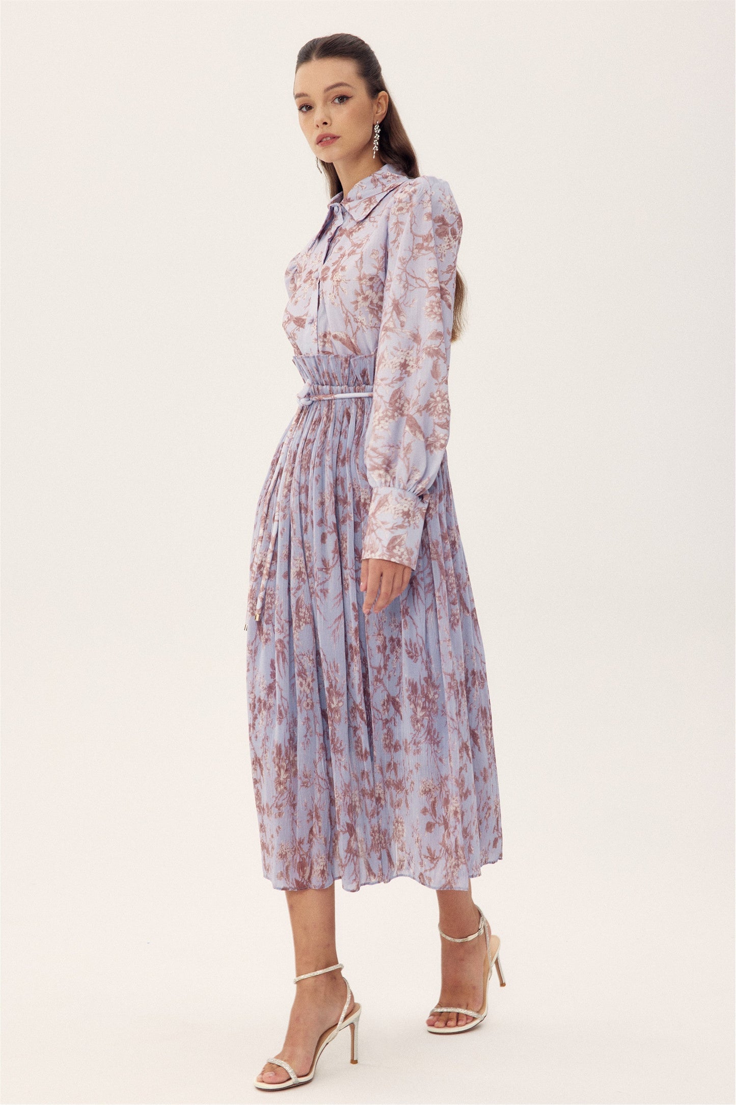 Eloise Uzun Kollu Fiyonklu Maxi Elbise