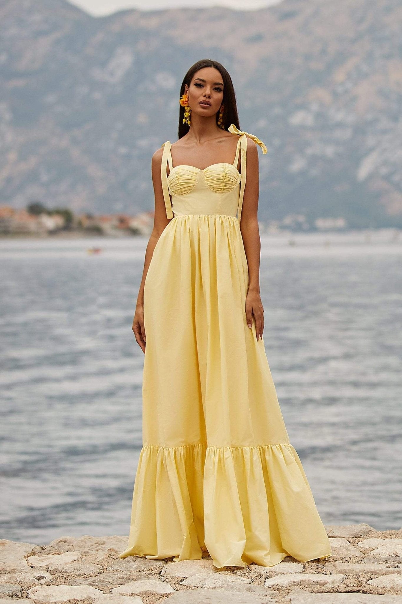 Julian Papyon Askılı Fırfırlı Maxi Elbise