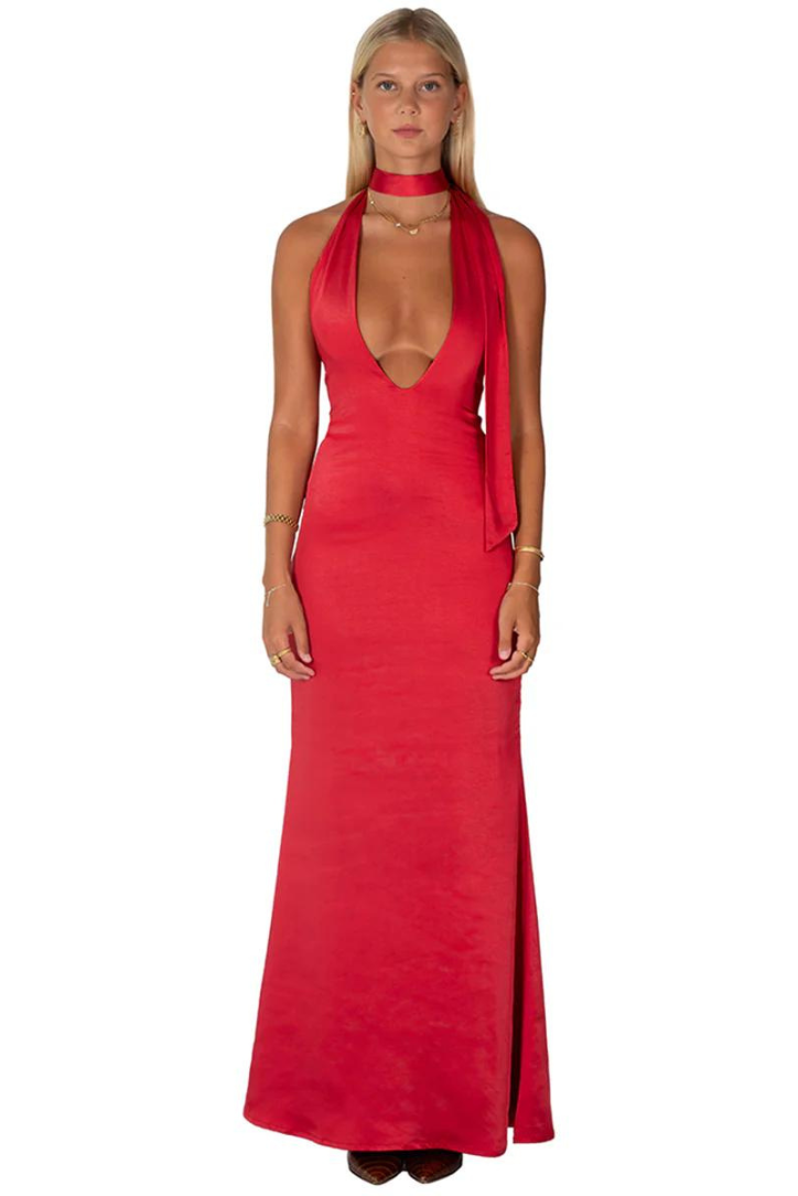 Karolina Saten Maksi - Kırmızı