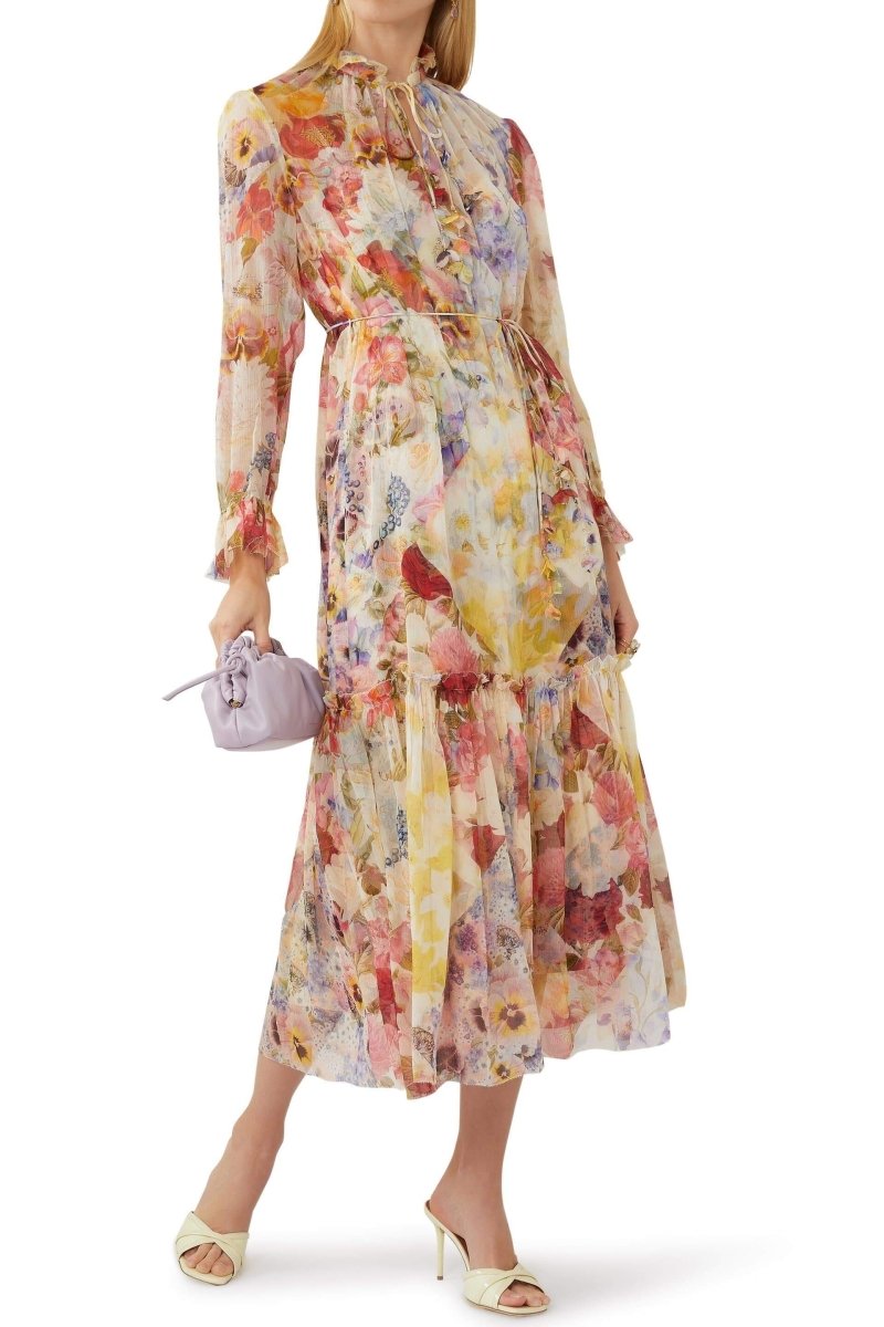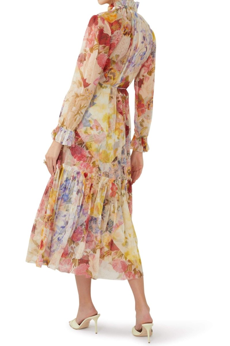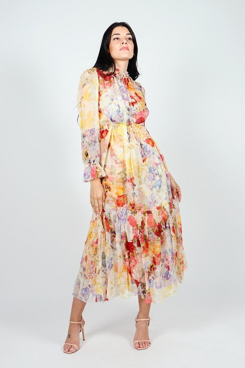 Katherine Çiçek Desenli Şifon Midi Elbise