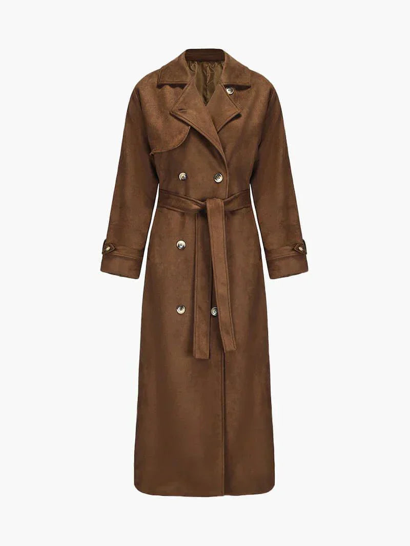 Bu zamansız uzun trençkot, kruvaze tasarımı ve özel kesimi ile sofistike ve çok yönlülüğü bir araya getiriyor. Silüeti vurgulamak için kemerli bir bele sahip olan bu ceket, mevsimler arası geçişler için mükemmeldir. Süet benzeri lüks kaplaması şıklık katar ve hem resmi hem de gündelik görünümler için idealdir. Çabasız bir stil için gardırobun vazgeçilmezi.