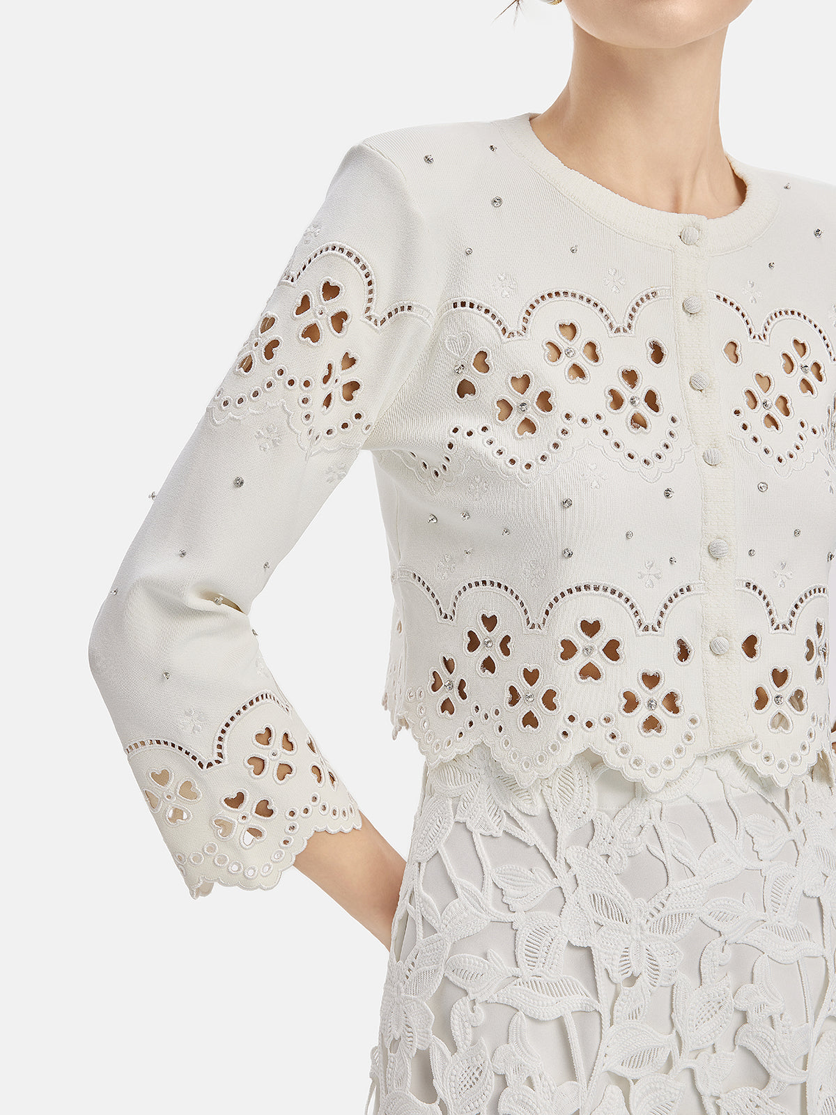 Dantel Nakışlı El Süslemeli Örgü Hırka