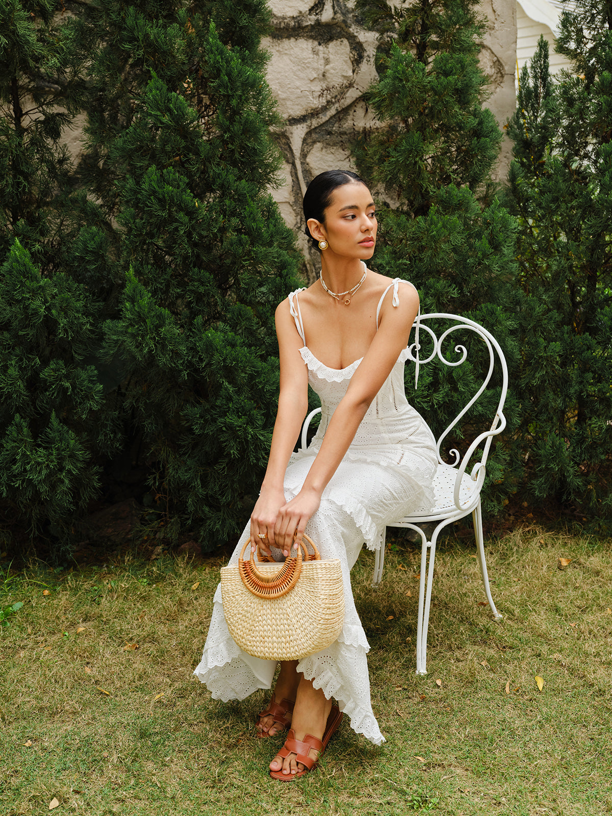 Bağcıklı Bağcıklı Askılı Volanlı Yarık Elbise