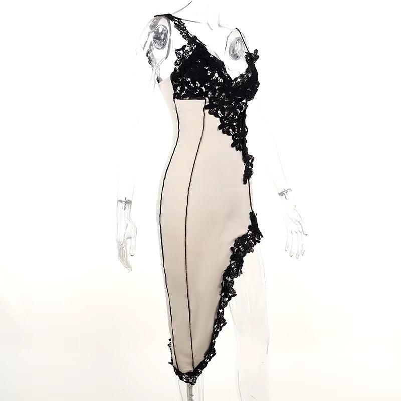 Laceluna Dantel Eklemeli Asimetrik Elbise