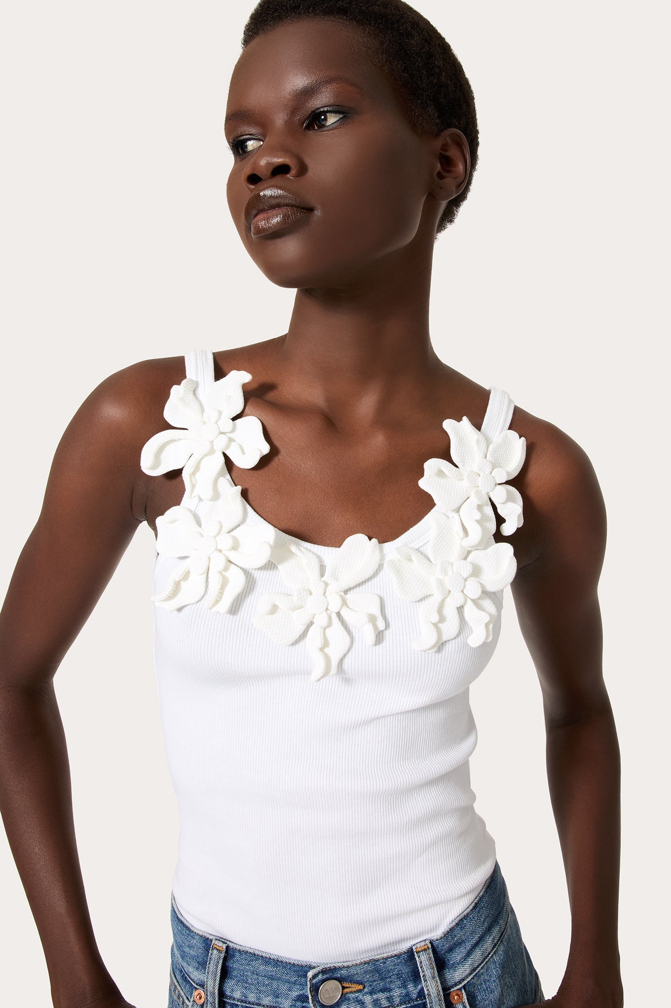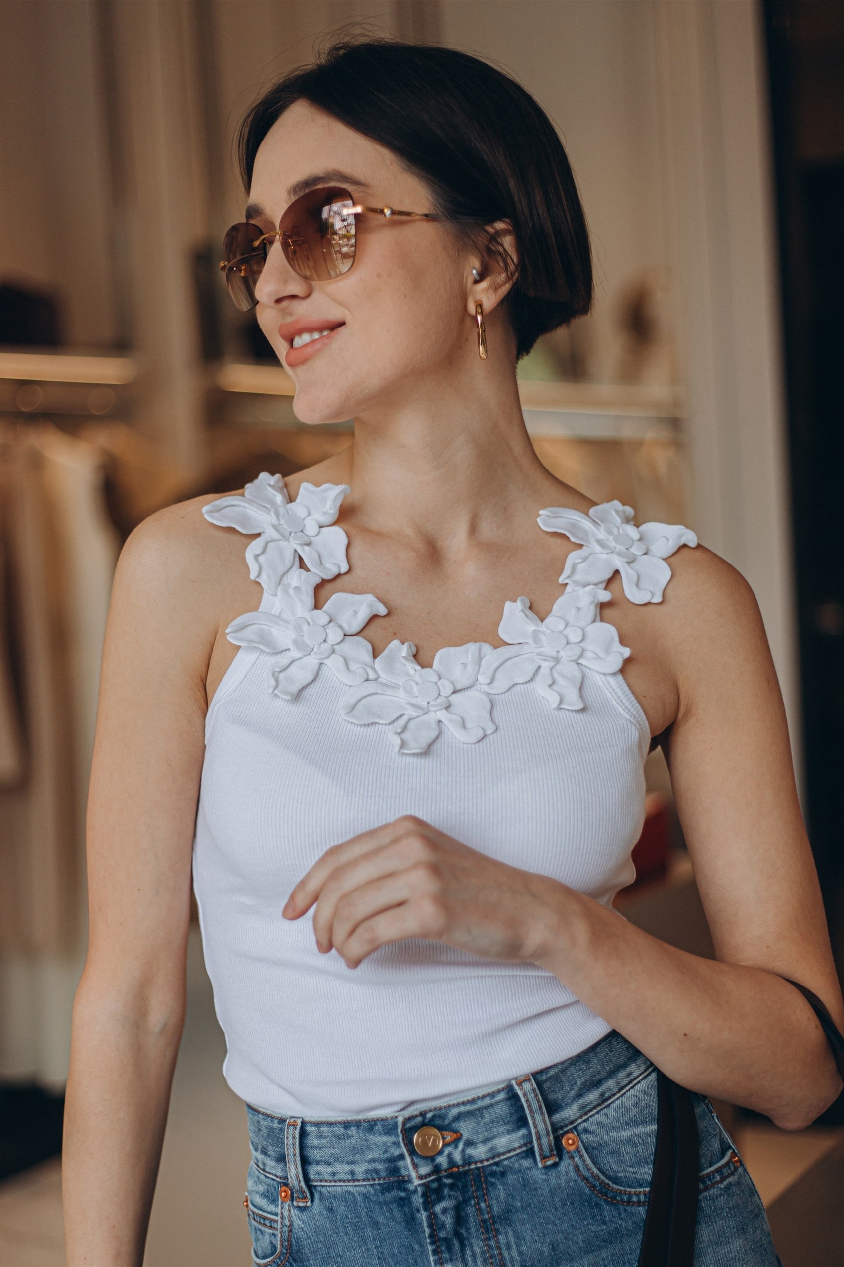 Lesley Çiçek Aplikeli Yuvarlak Yaka Üst