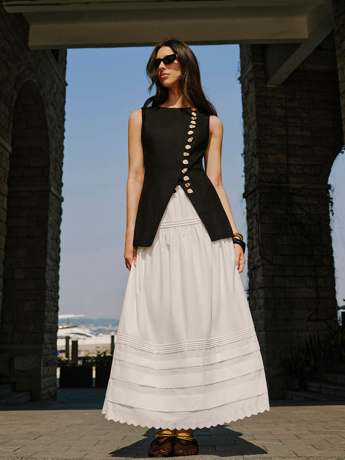 Keten Karışımlı Düğme Detaylı Yelek