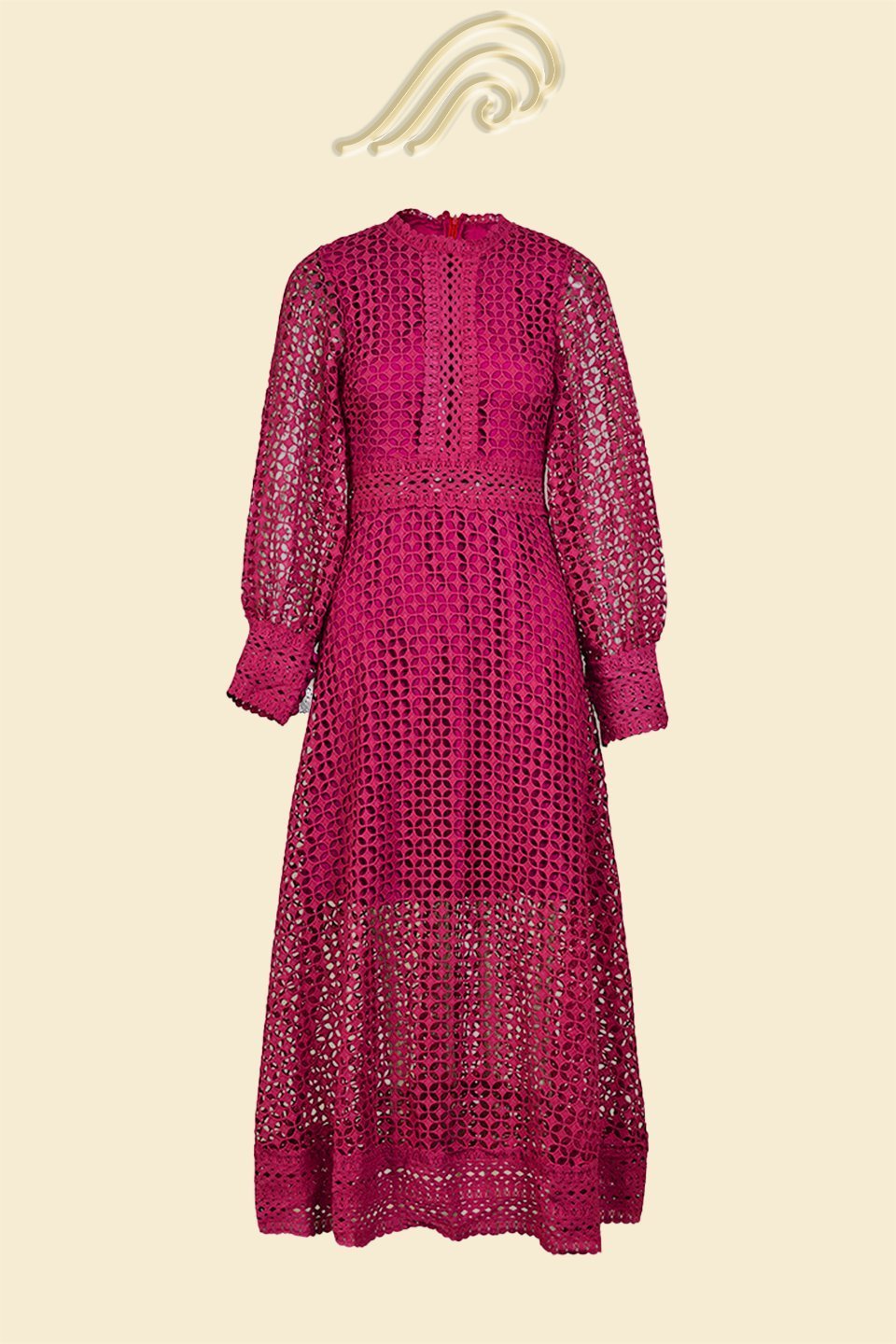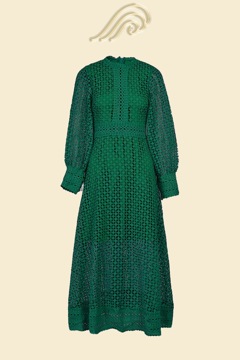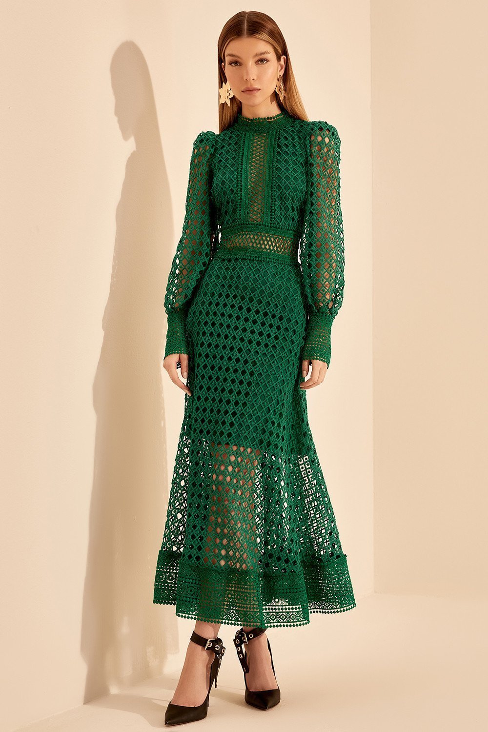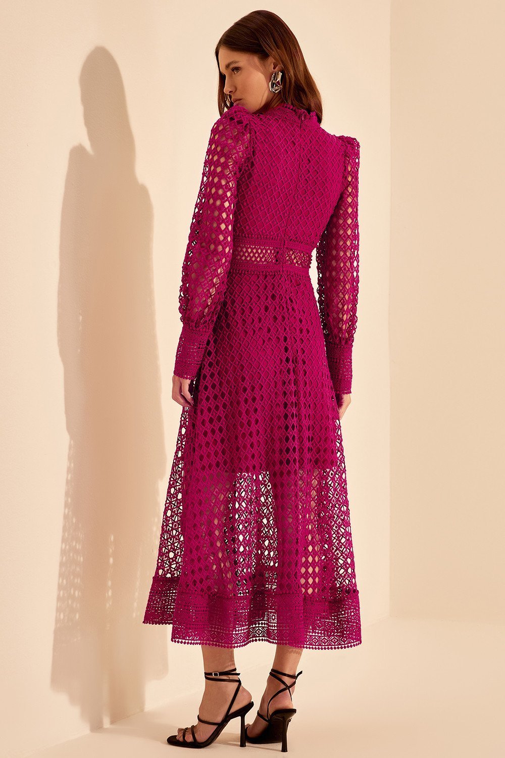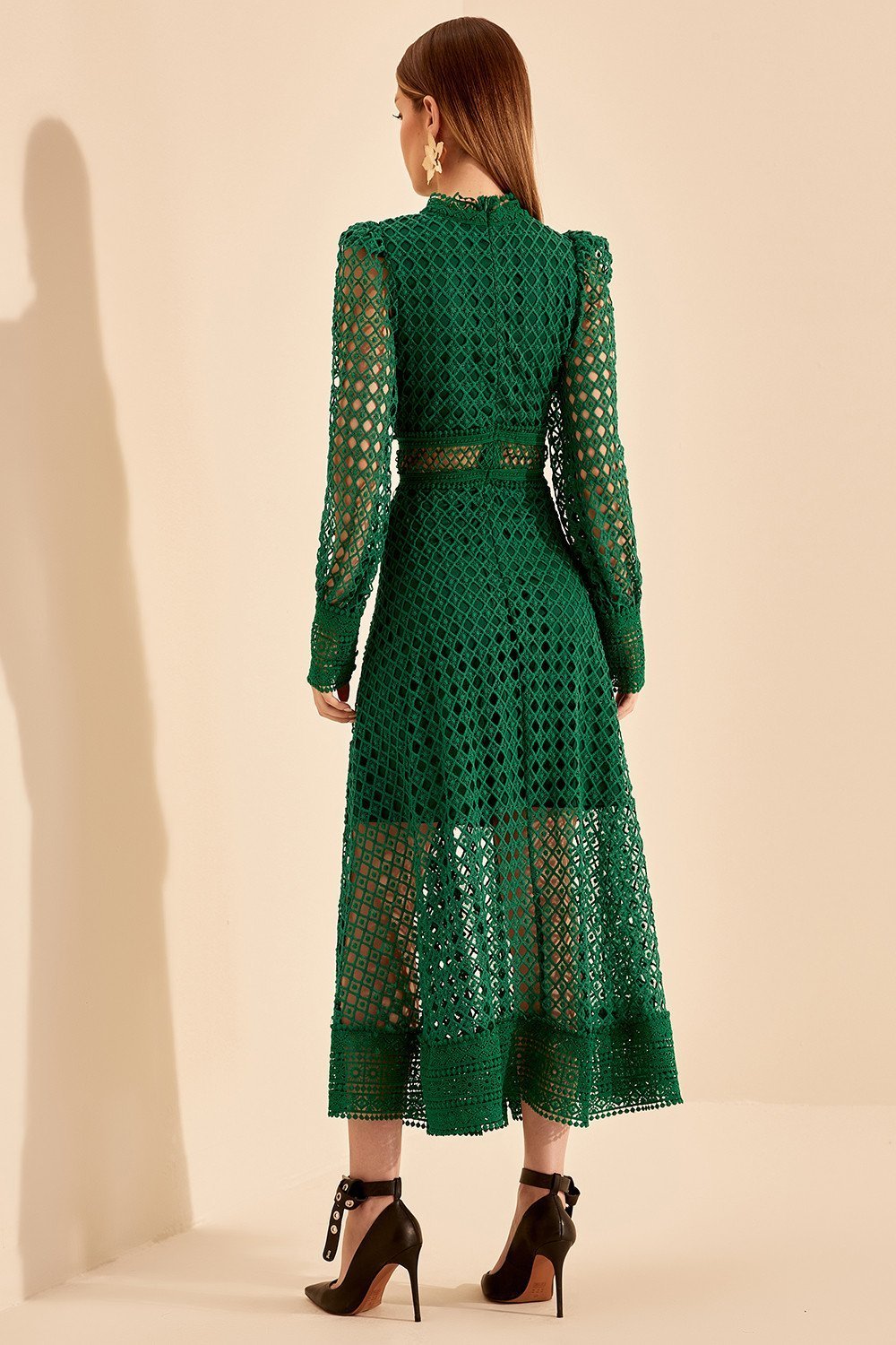 Liz İşlemeli Dantel İçi Boş Midi Elbise