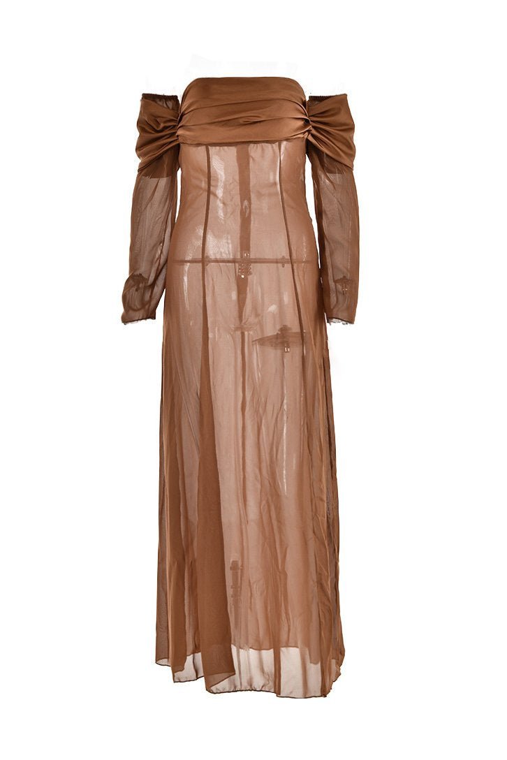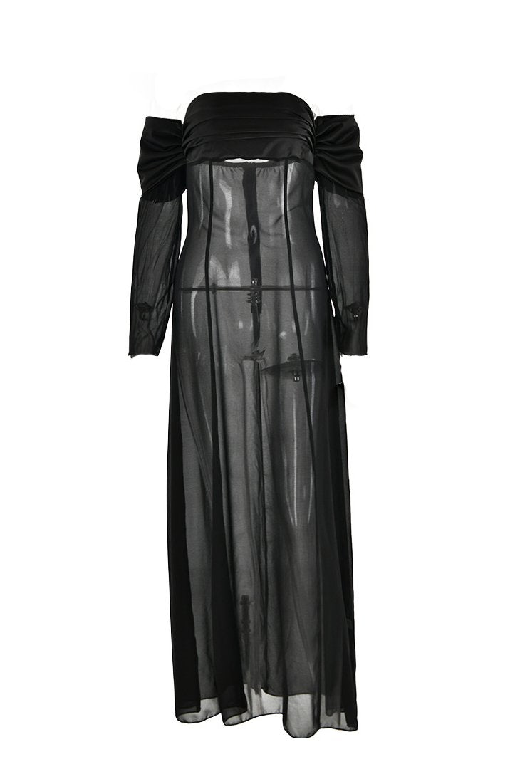 Glam Zarif Panelli Tül Uzun Kollu A Kesim Maxi Elbise