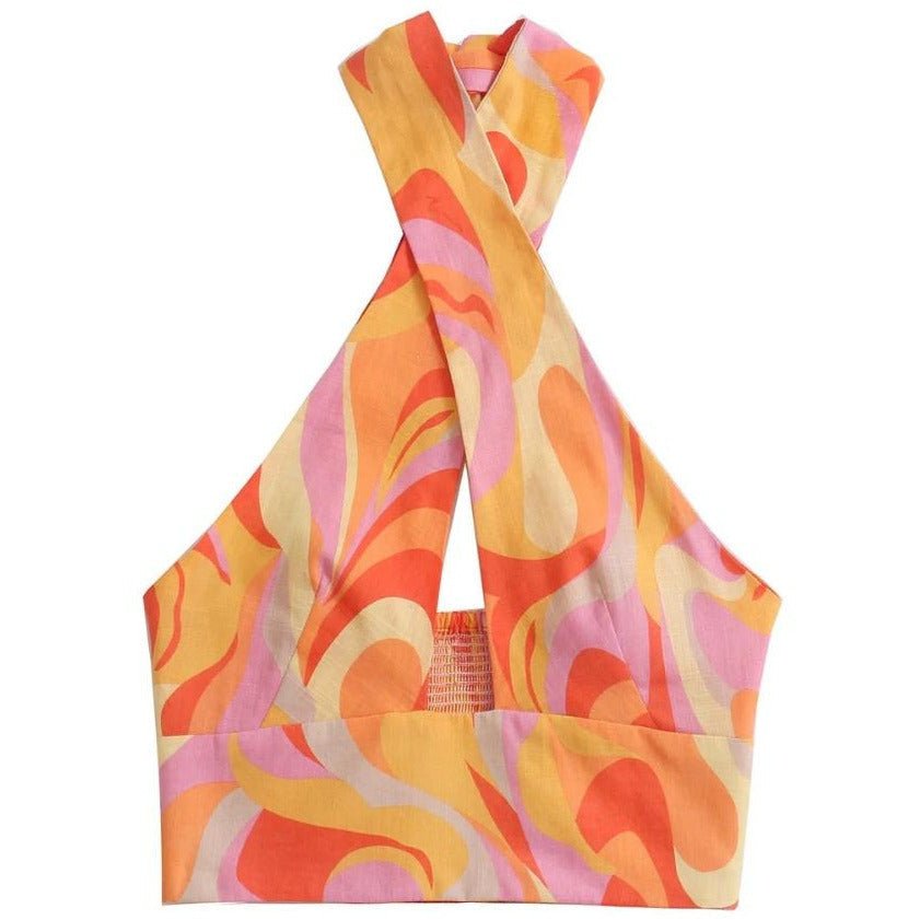 Lorna Baskılı Çapraz Boyundan Bağlı Bluz