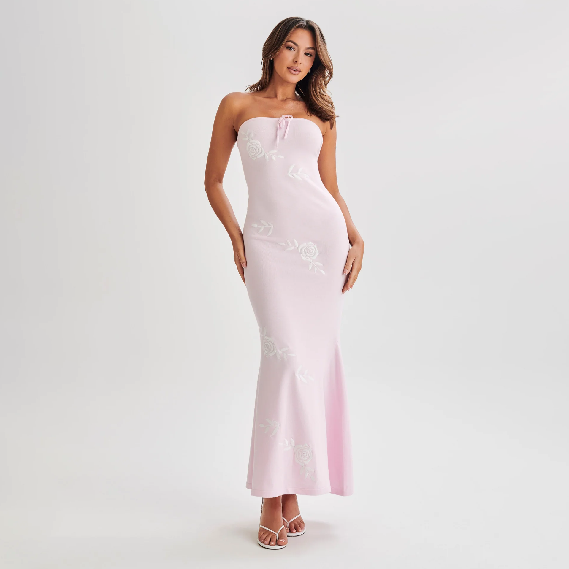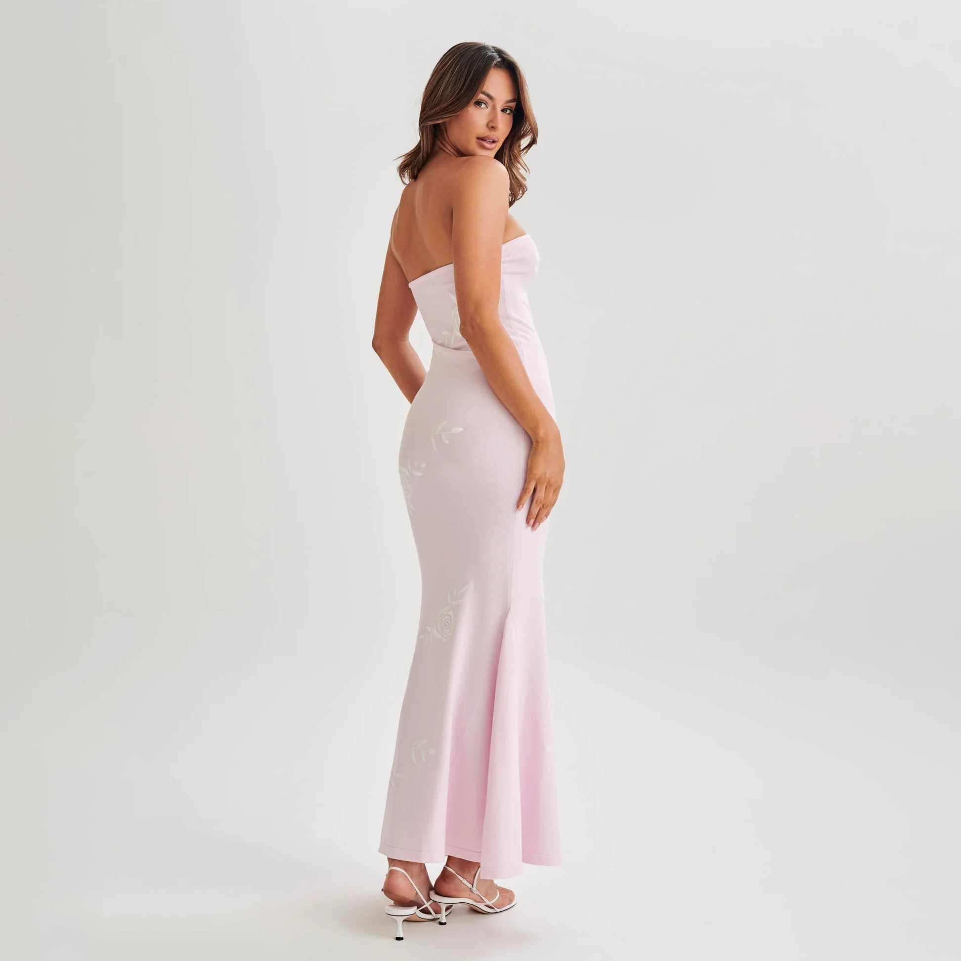 Nina Çiçek İşlemeli Payetler Maxi Elbise