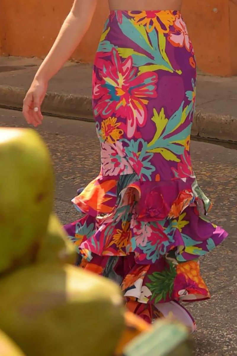 Gloria Paisley Baskılı Fırfırlı Uzun Elbise