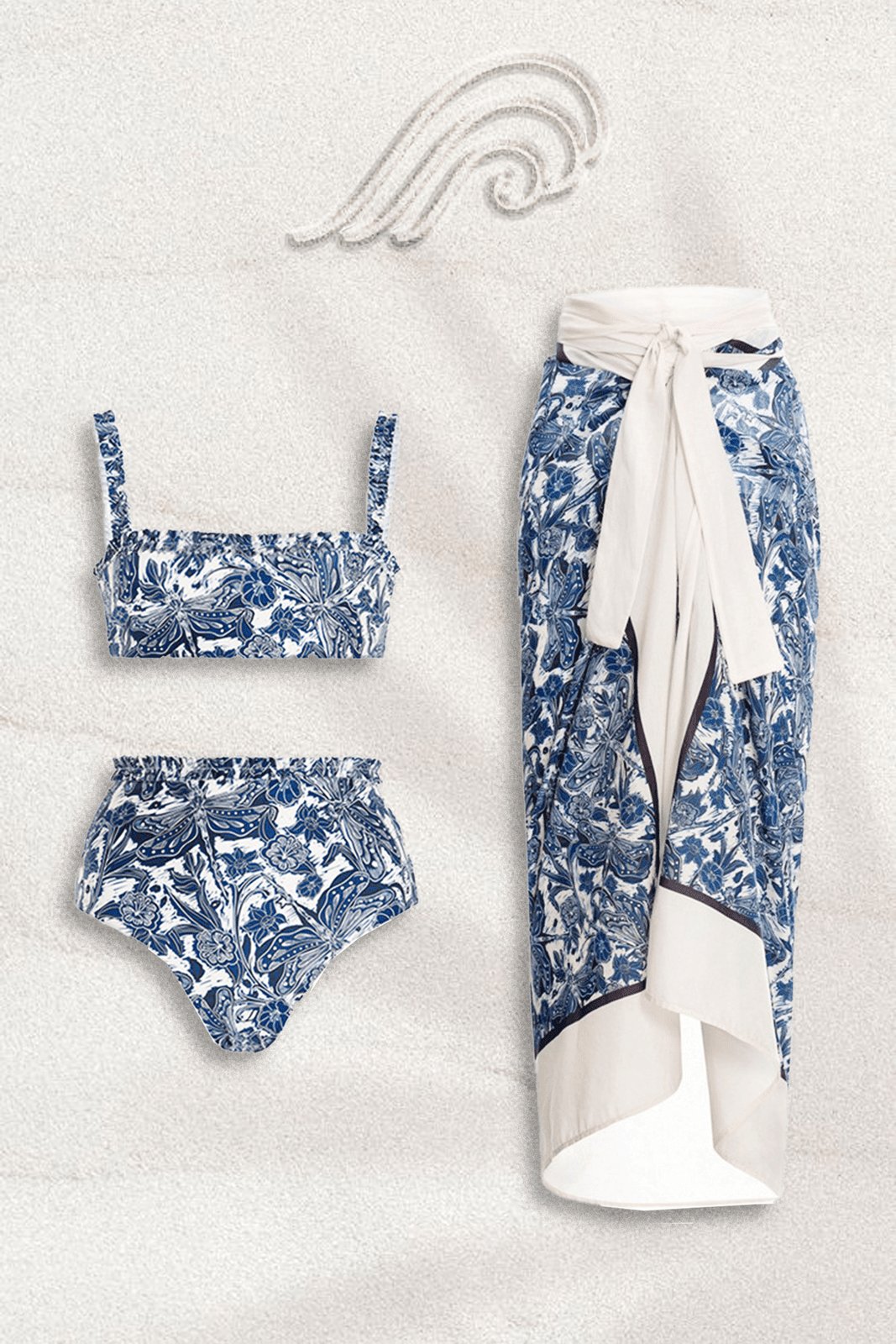 Maria Toile Baskılı Üç Parçalı Yüzme Seti