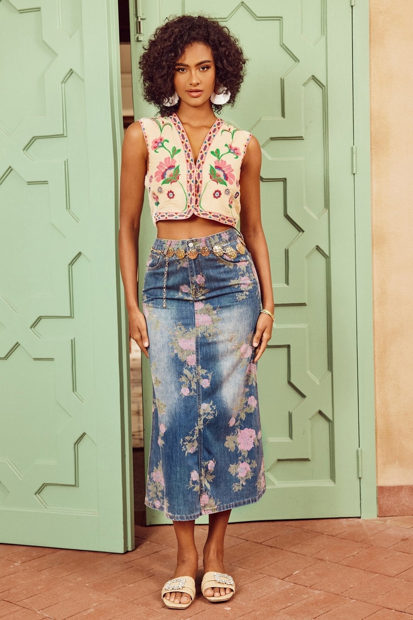 Nina Çiçek İşlemeli Payetler Maxi Elbise