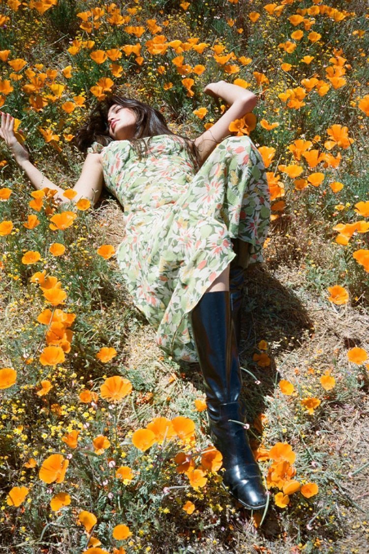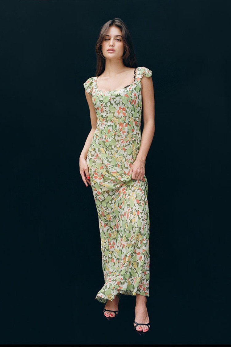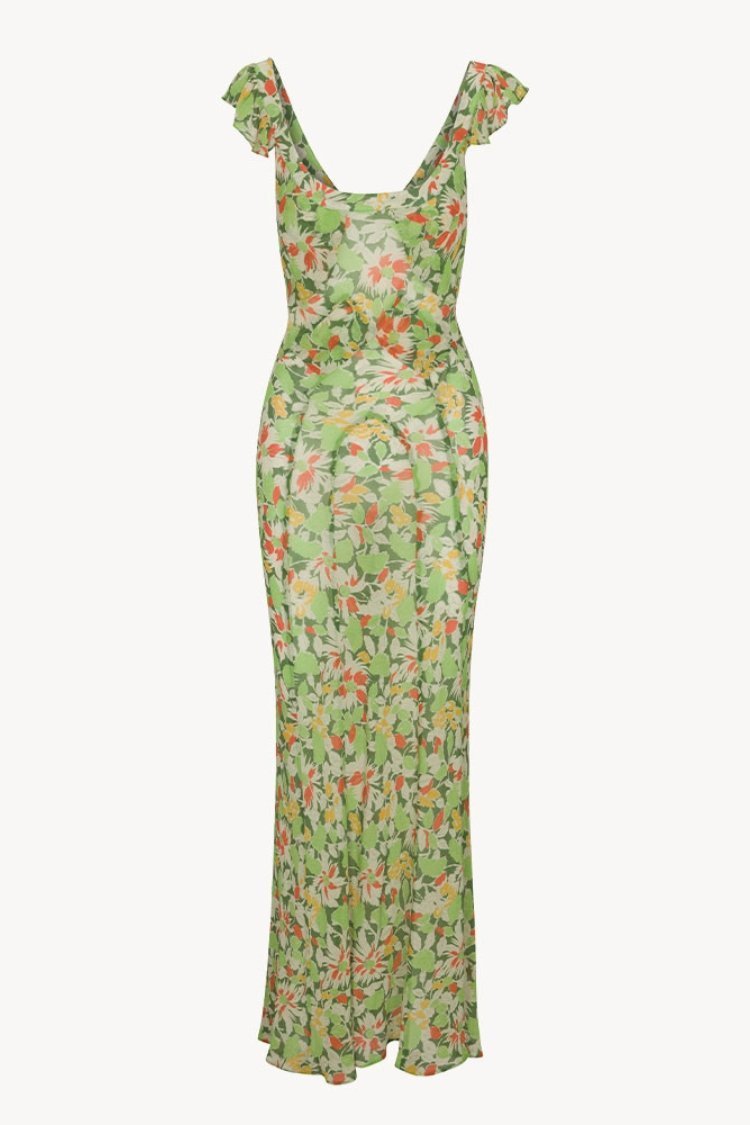 Mildred Baskılı Kayık Yaka Uzun Elbise