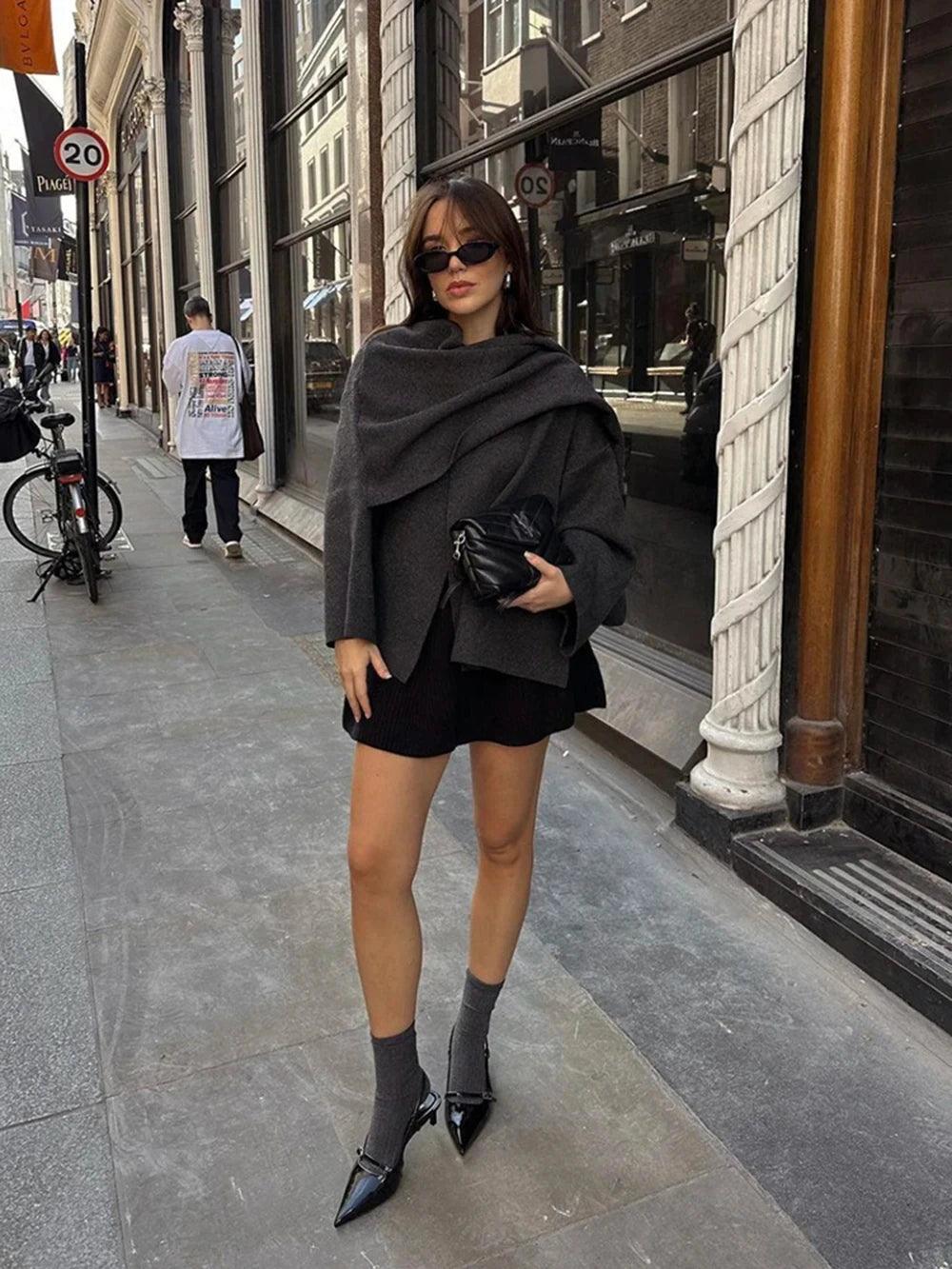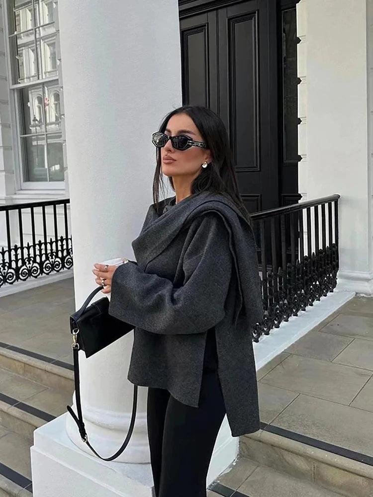 Modern Asimetrik Yün Pançomuzla zahmetsizce şık ve rahat kalın. Benzersiz dökümlü bir siluetle tasarlanan bu panço, kış gardırobunuza şık bir dokunuş katar. Çok yönlü kesimi ve sıcak tutan hafif malzemesi, onu soğuk günlerde kat kat giymek için ideal bir seçim haline getirir. Günlük gezintiler için mükemmeldir veya görünümünüze sofistike bir hava katar.