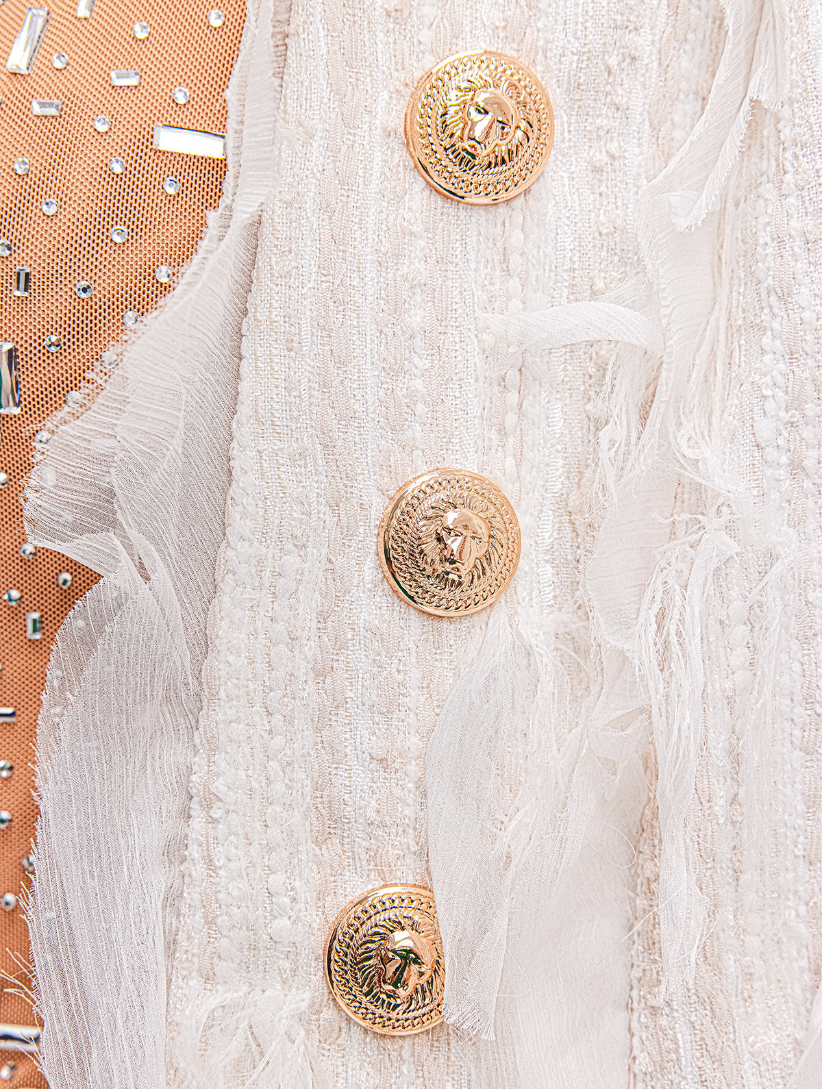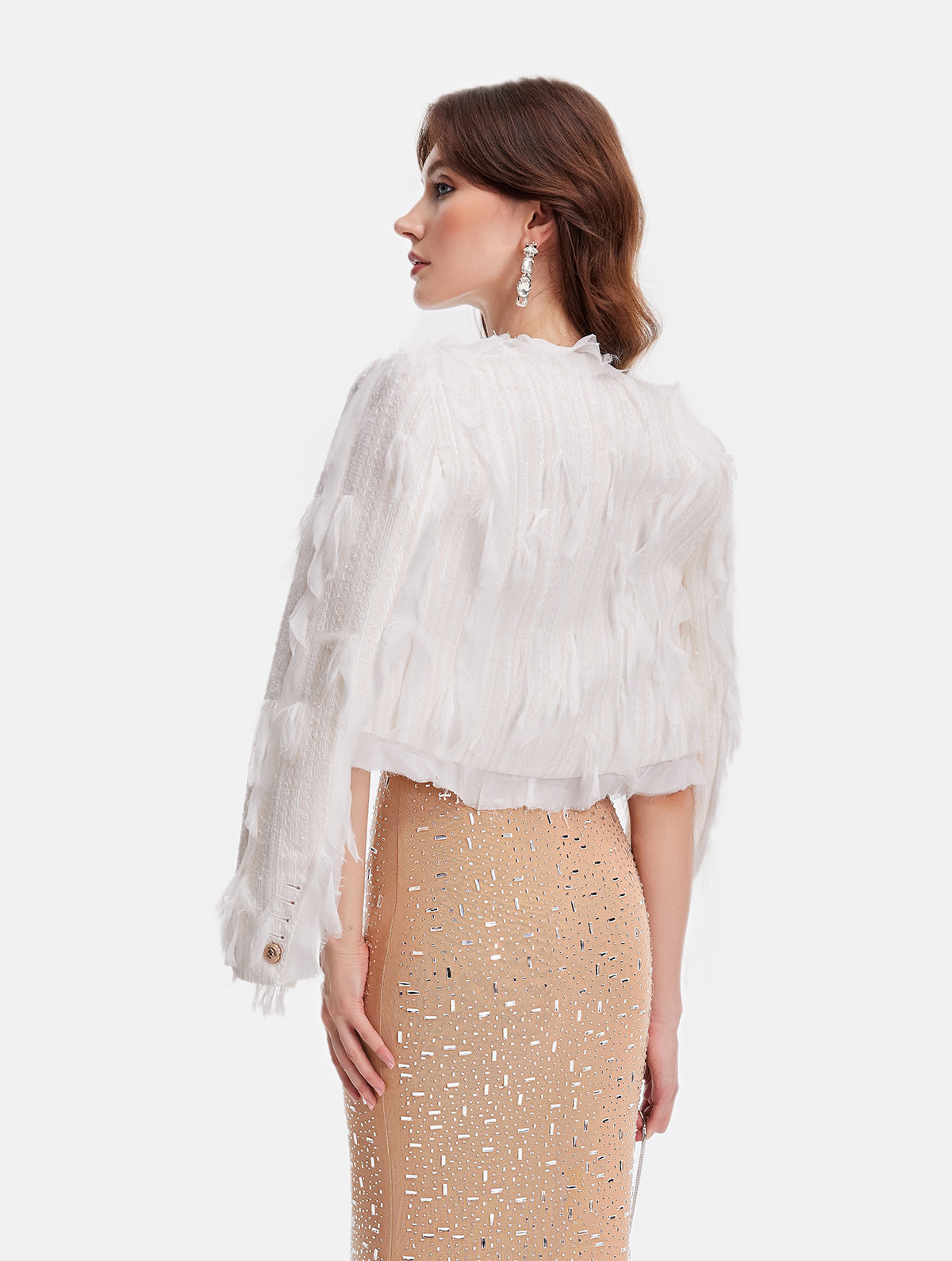 Yvonne Diamante Tüylü Pileli Maxi Şifon Elbise