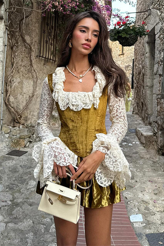 Lorelei Siyah Dantel Jakarlı Mini Elbise