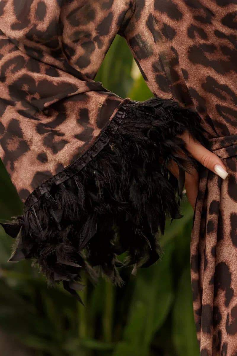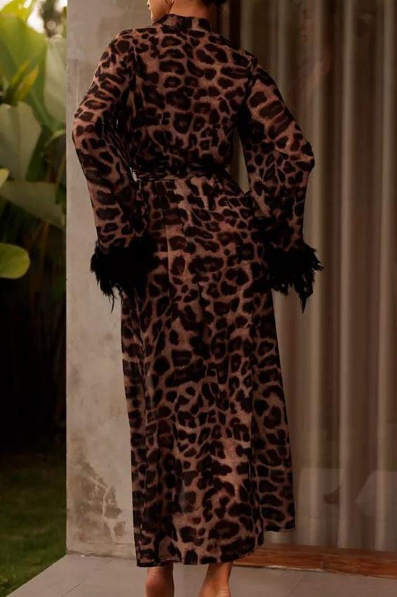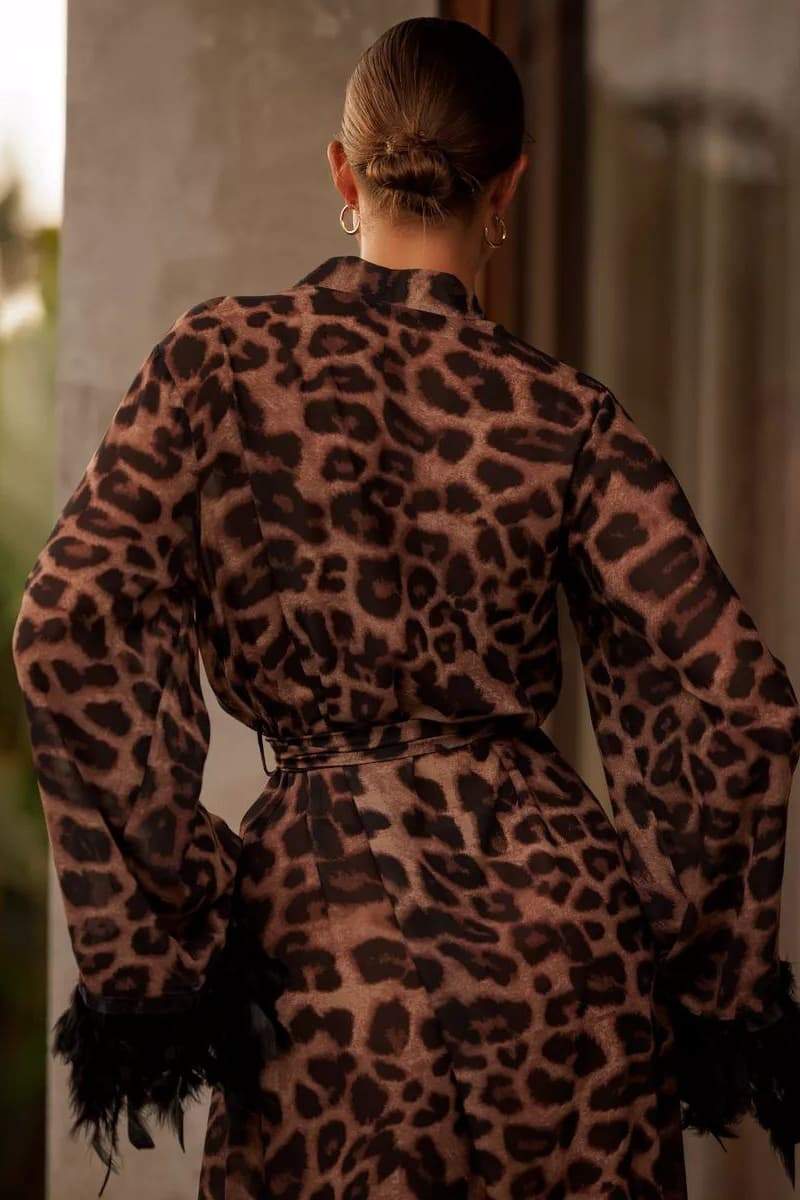 Natalie Leopar Desenli Tüylü Maxi Bornoz