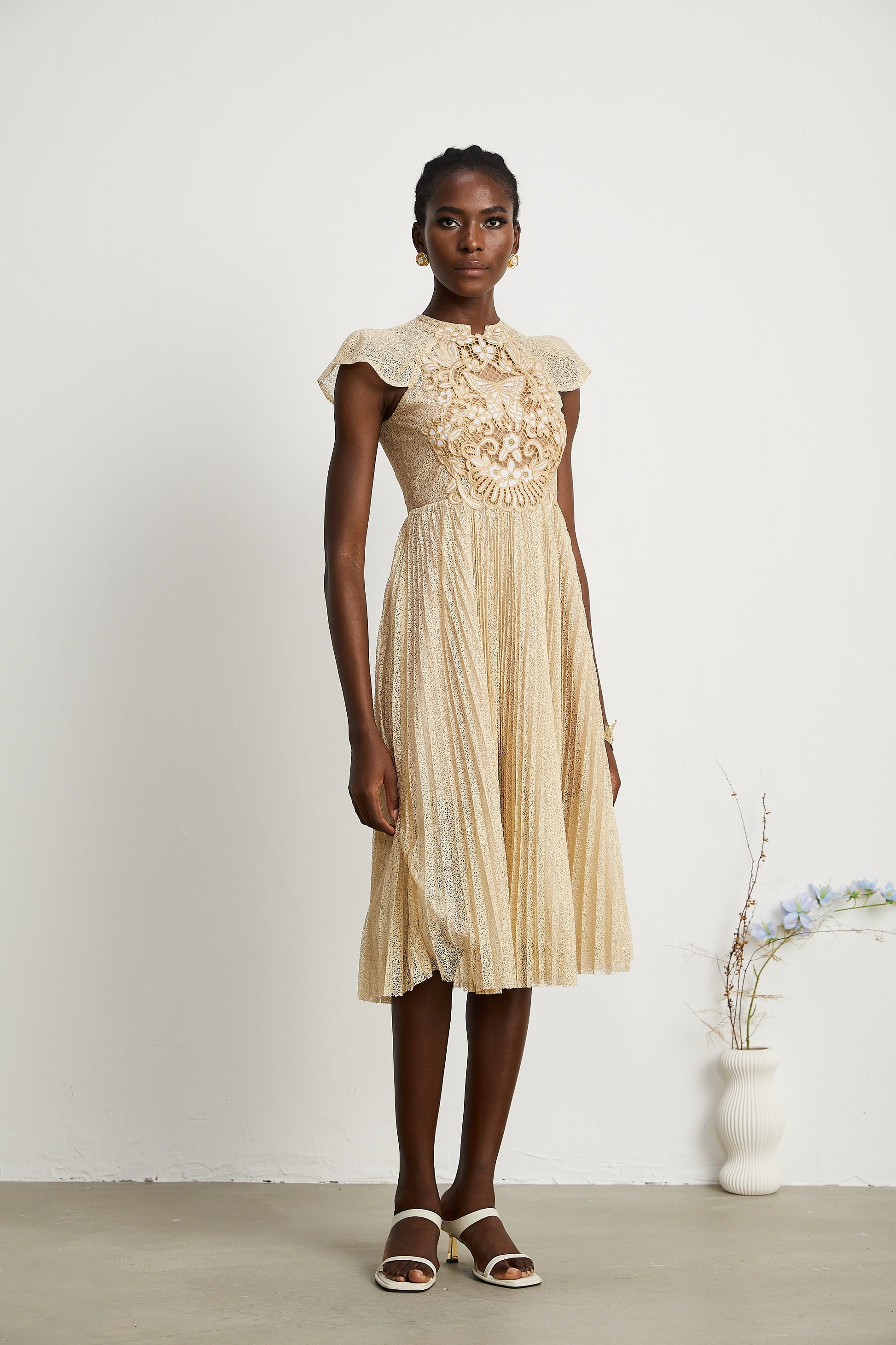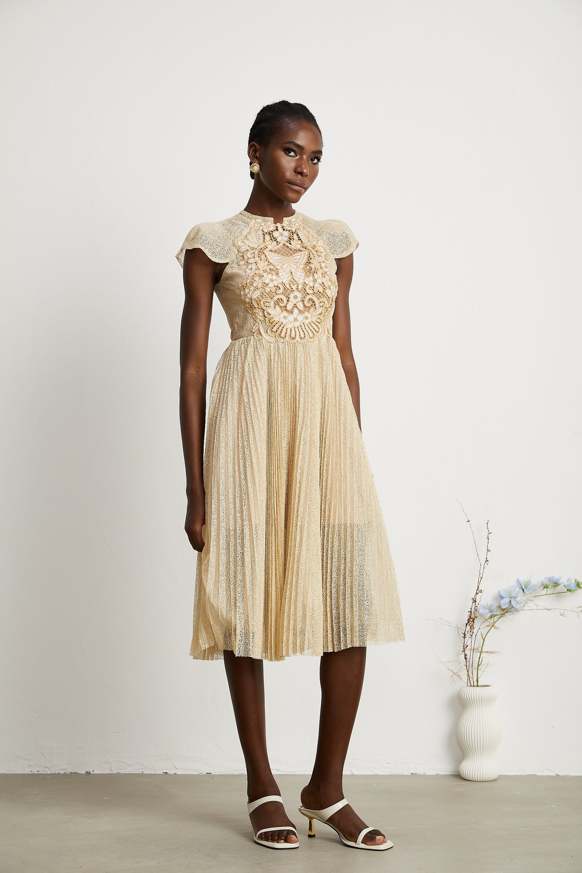 Nerissa İşlemeli Pilili Midi Elbise