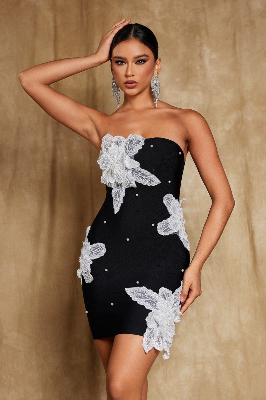 Niall Straplez Çiçek İnci Mini Elbise