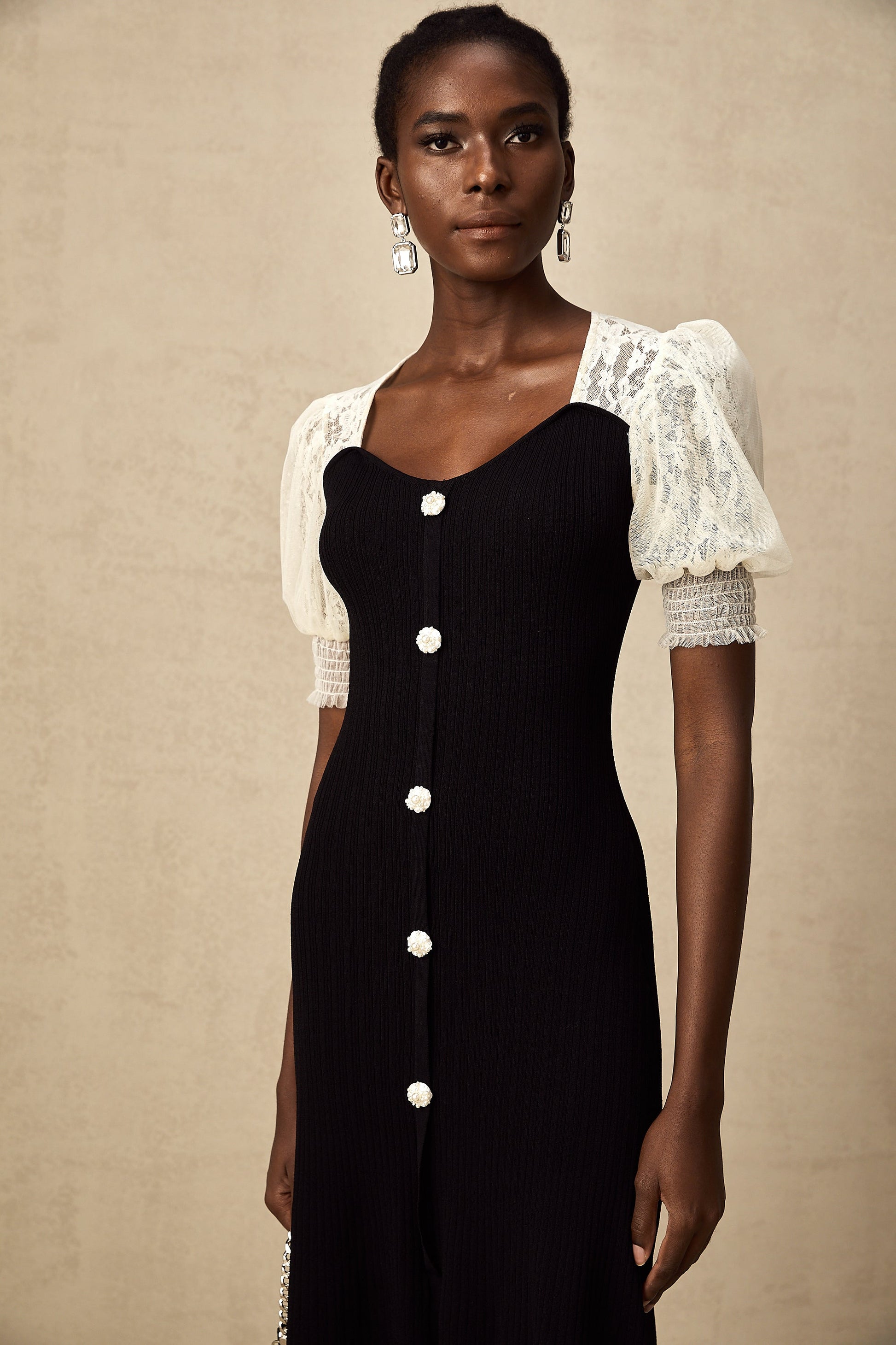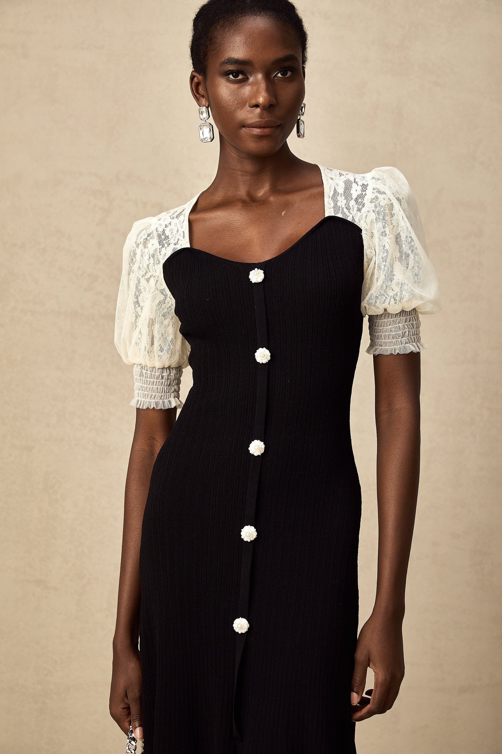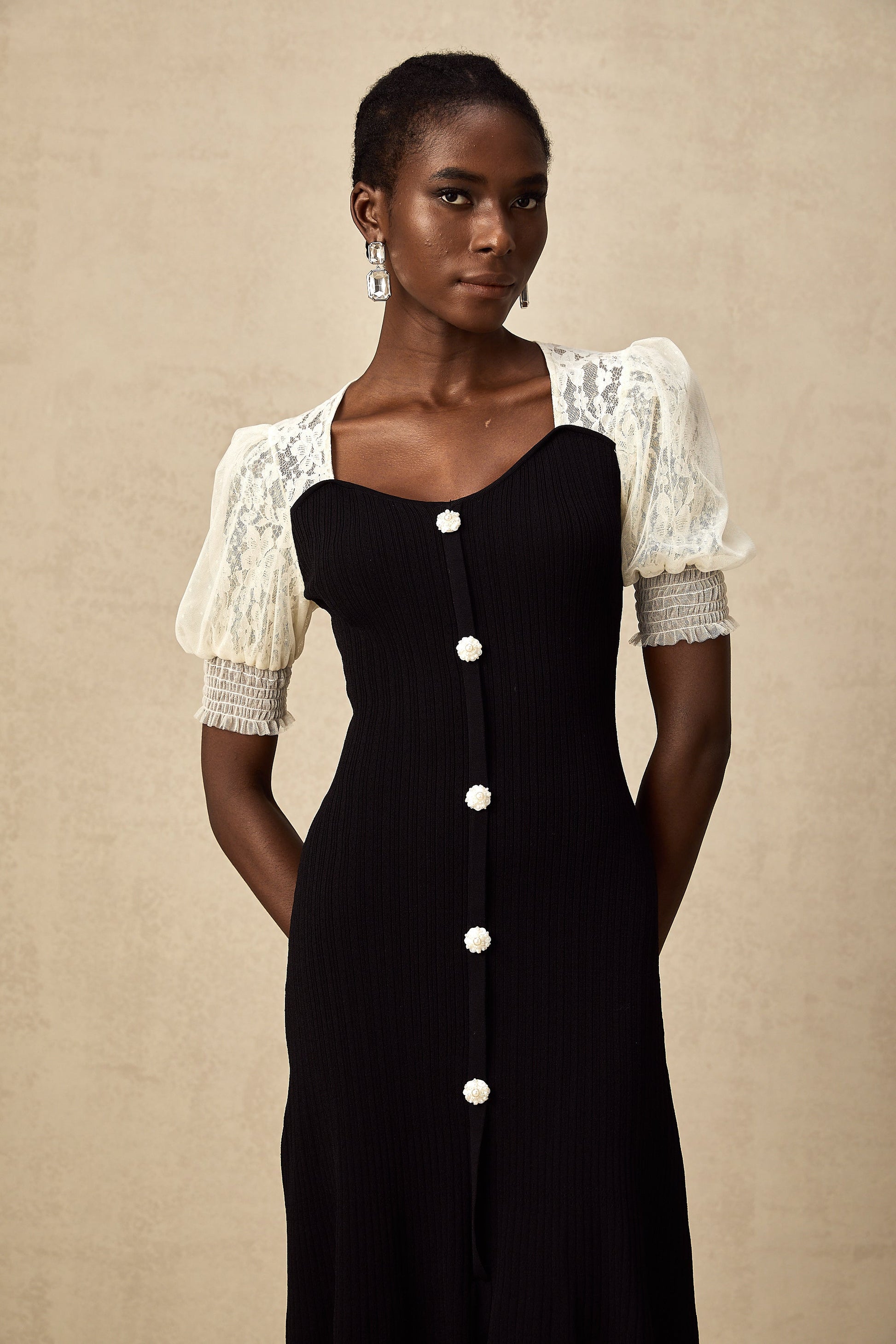 Lorelei Siyah Dantel Jakarlı Mini Elbise