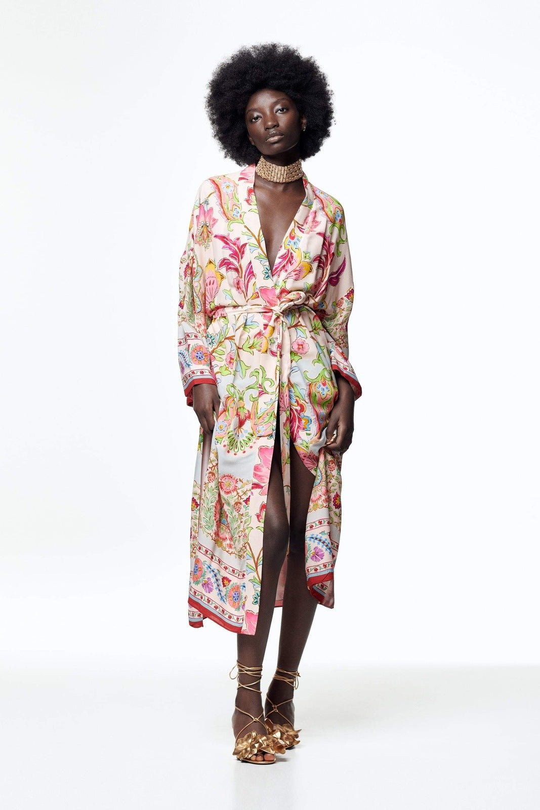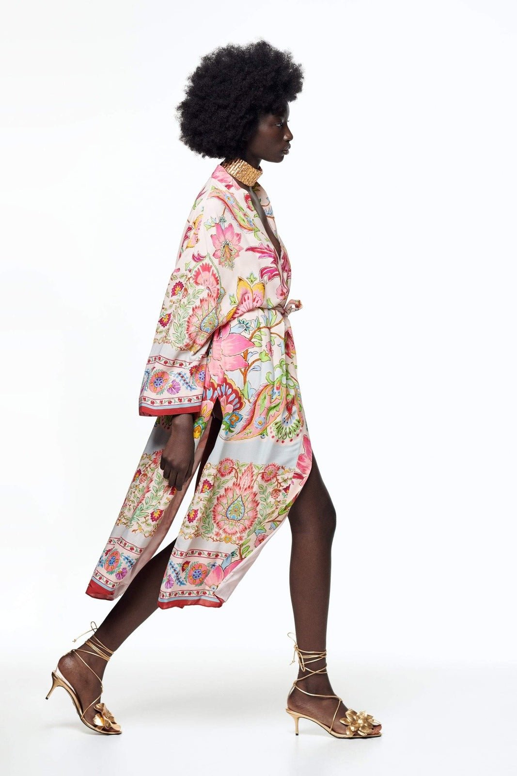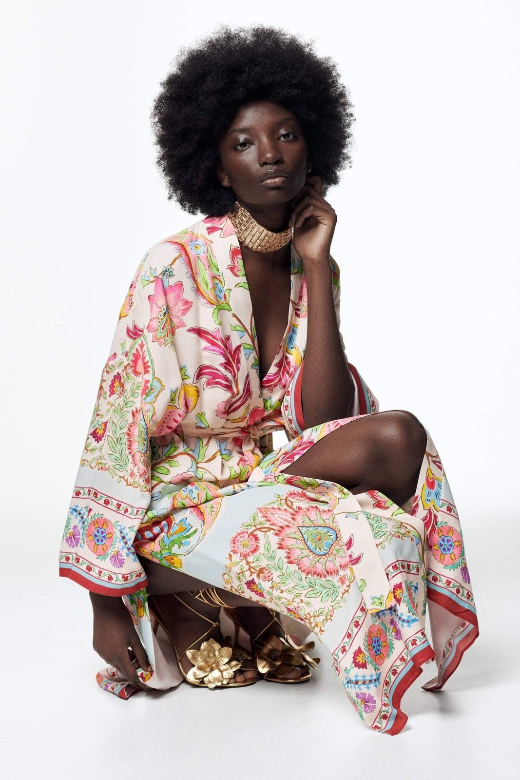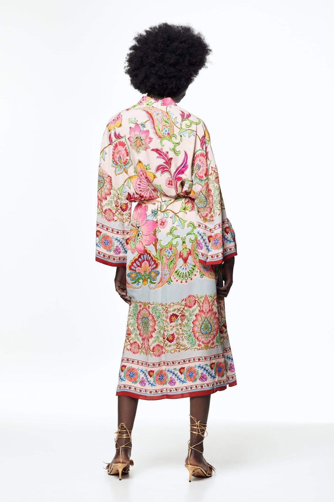 21% İndirimGloria Paisley Baskılı Fırfırlı Uzun Elbise