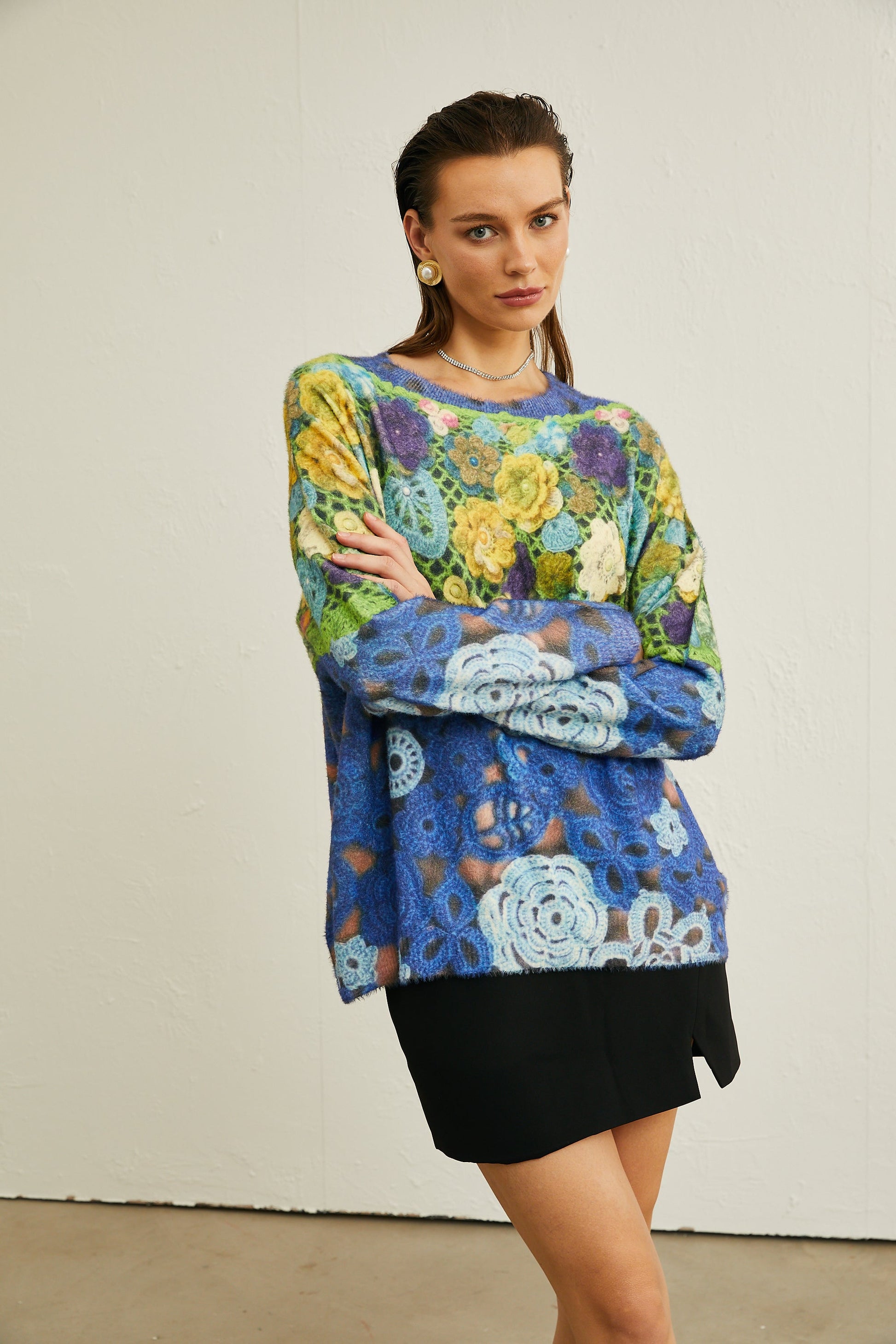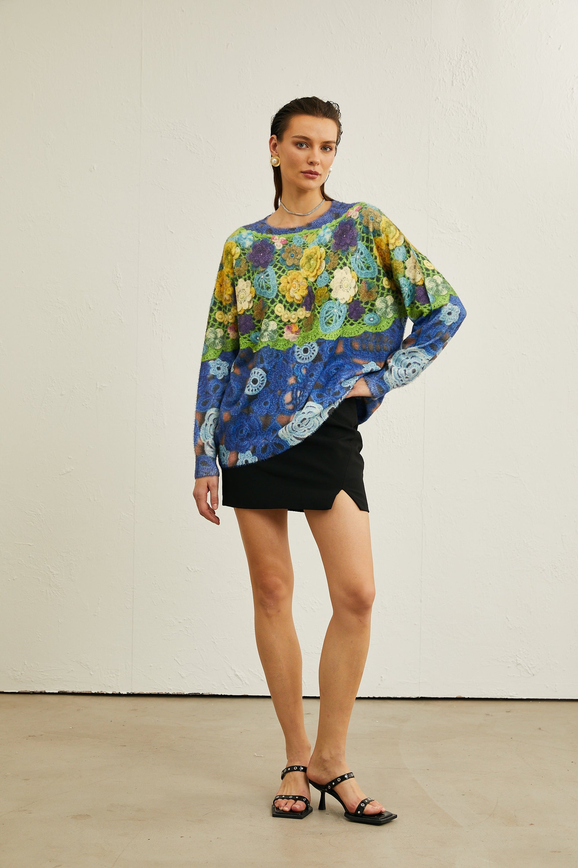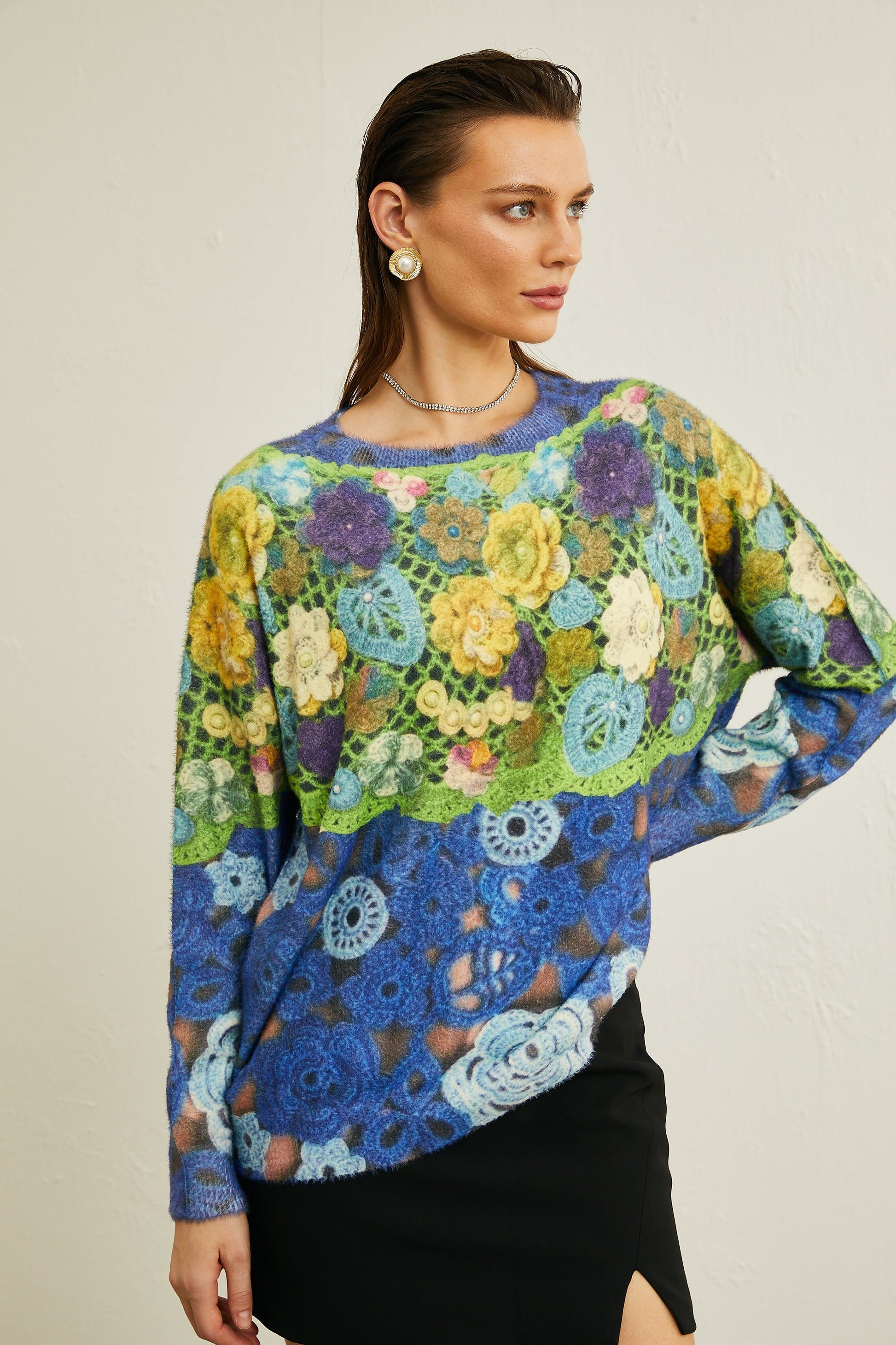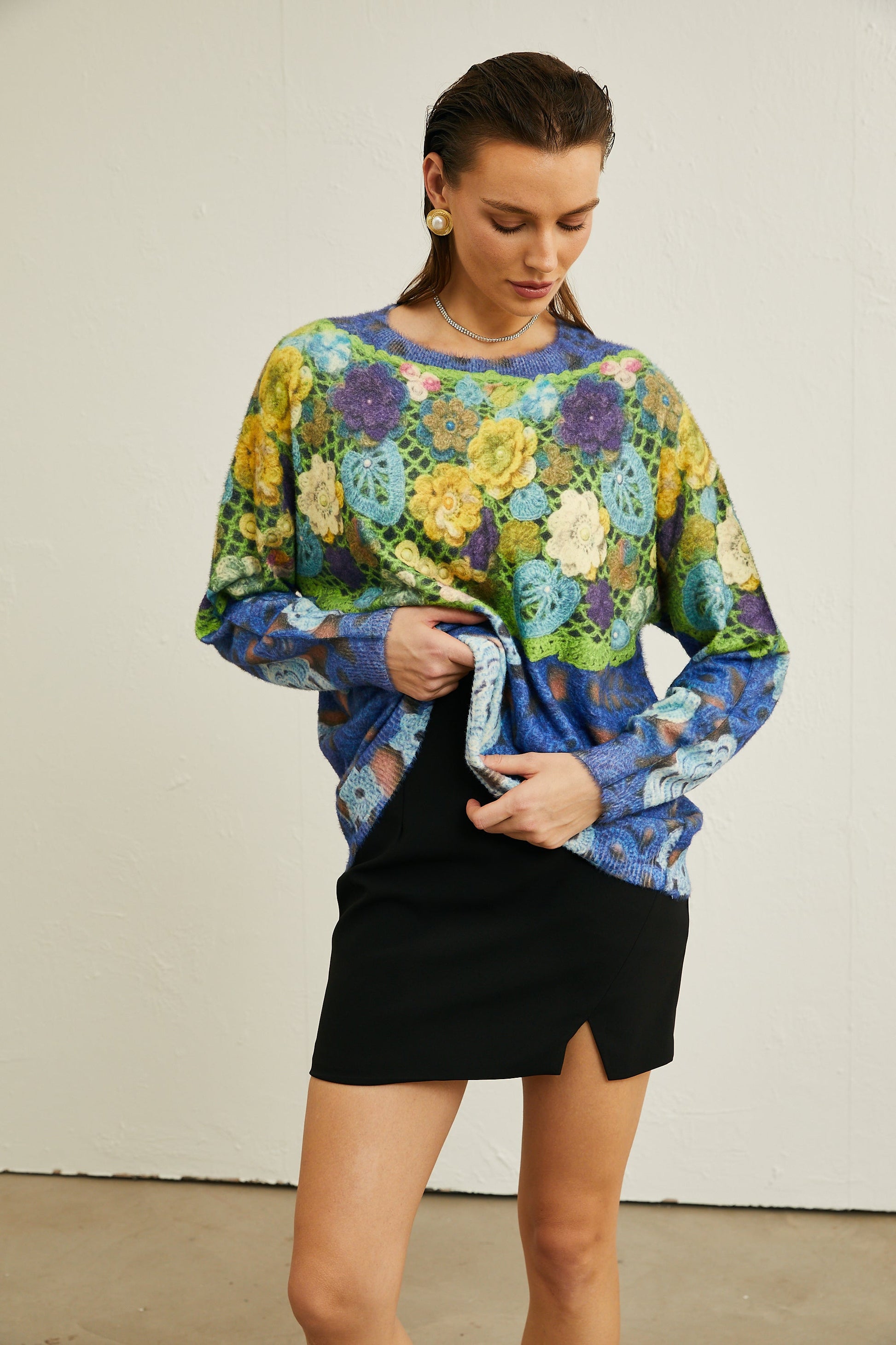 Nina Çiçek İşlemeli Payetler Maxi Elbise