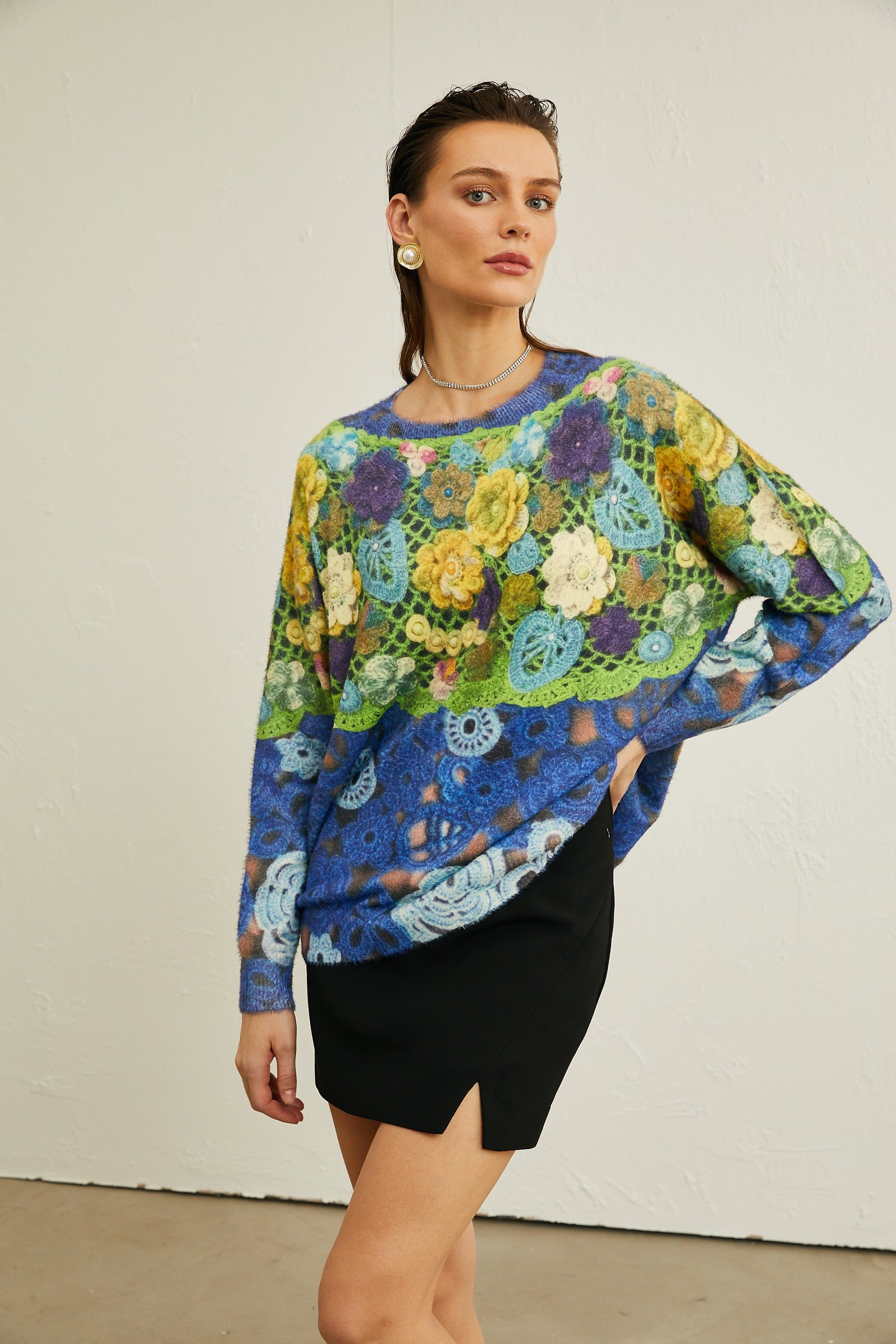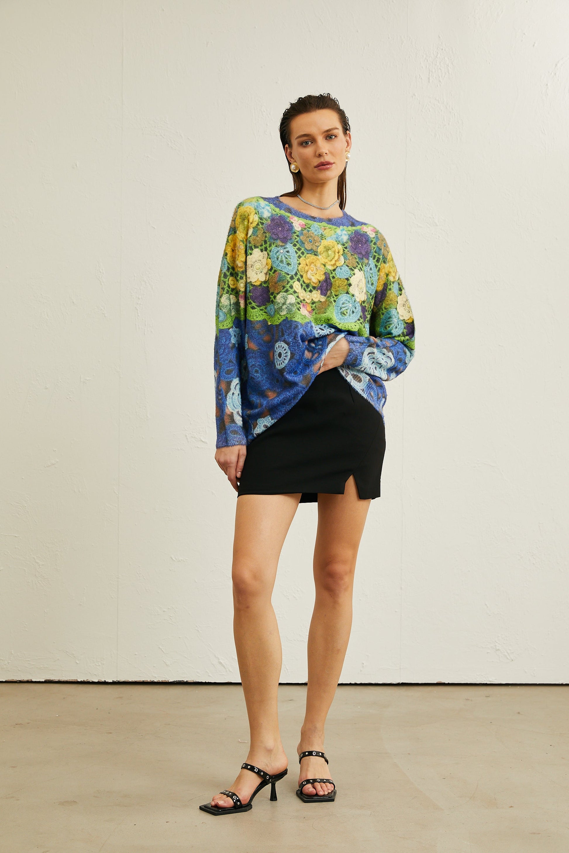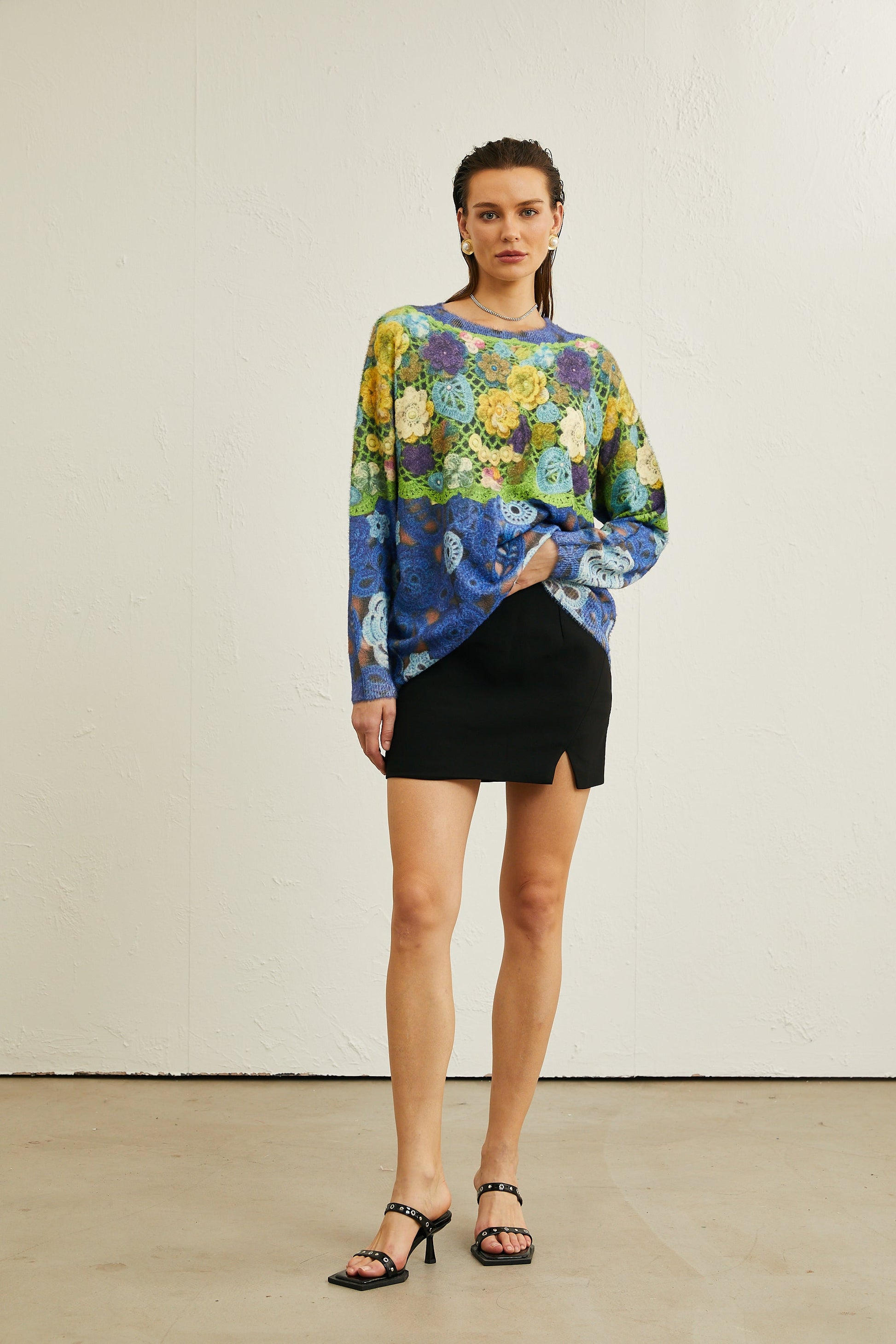 Biberiye Siyah 3D Çiçekli Uzun Elbise