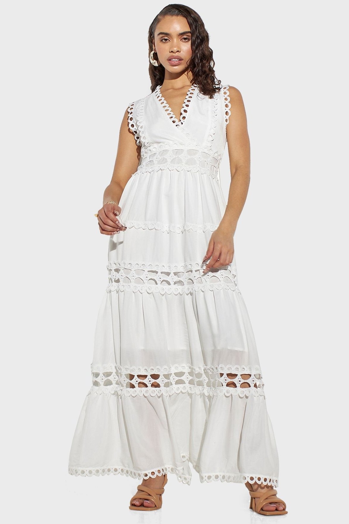 Nina Çiçek İşlemeli Payetler Maxi Elbise
