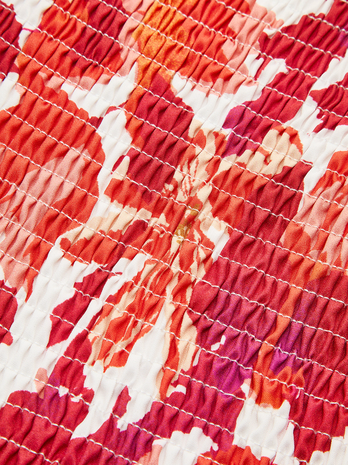 Omuzları Açık Çiçekli Fırfırlı Elbise