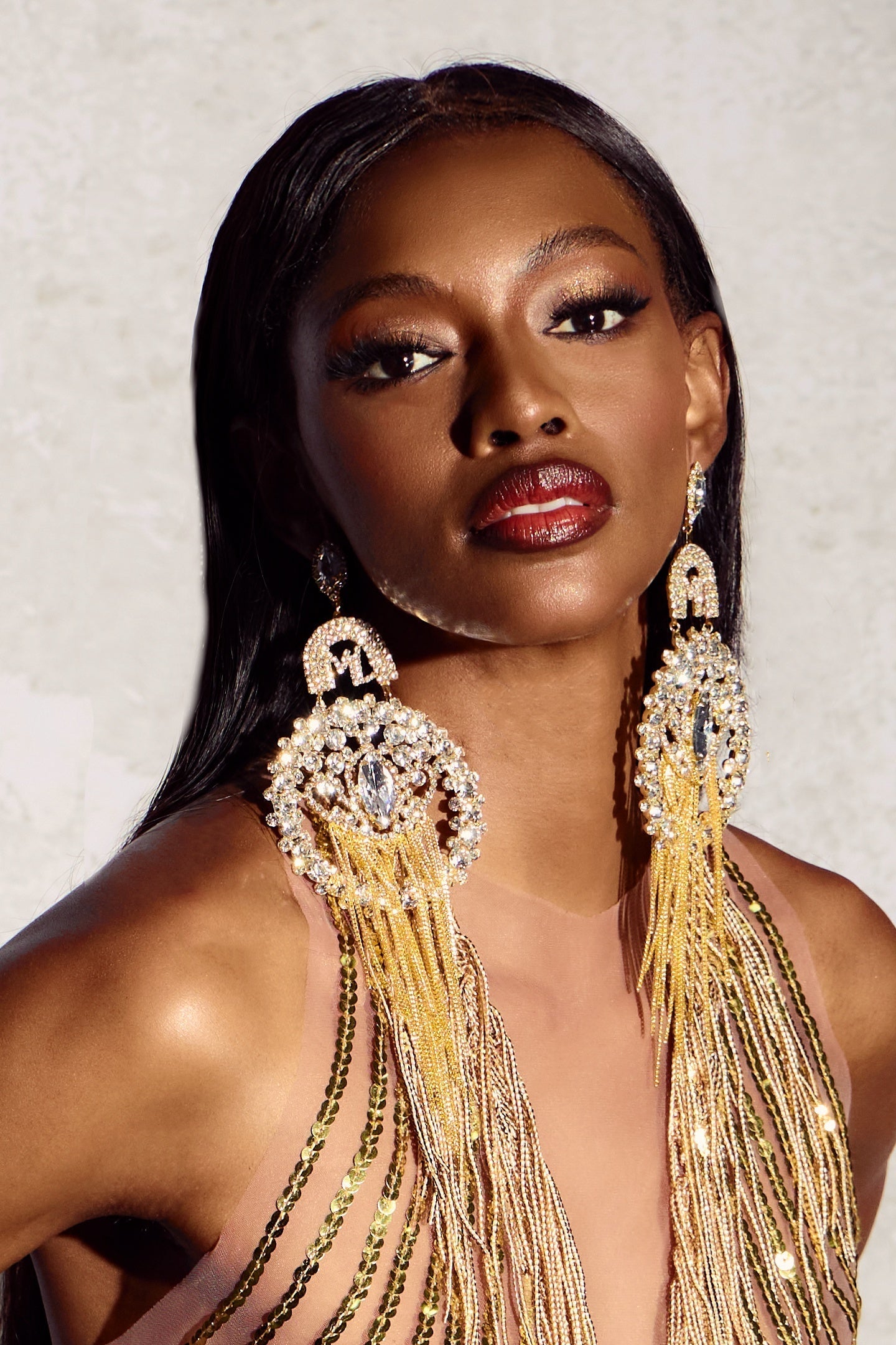 Büyük Boy Taşlı Püskül Sallantılı Küpe