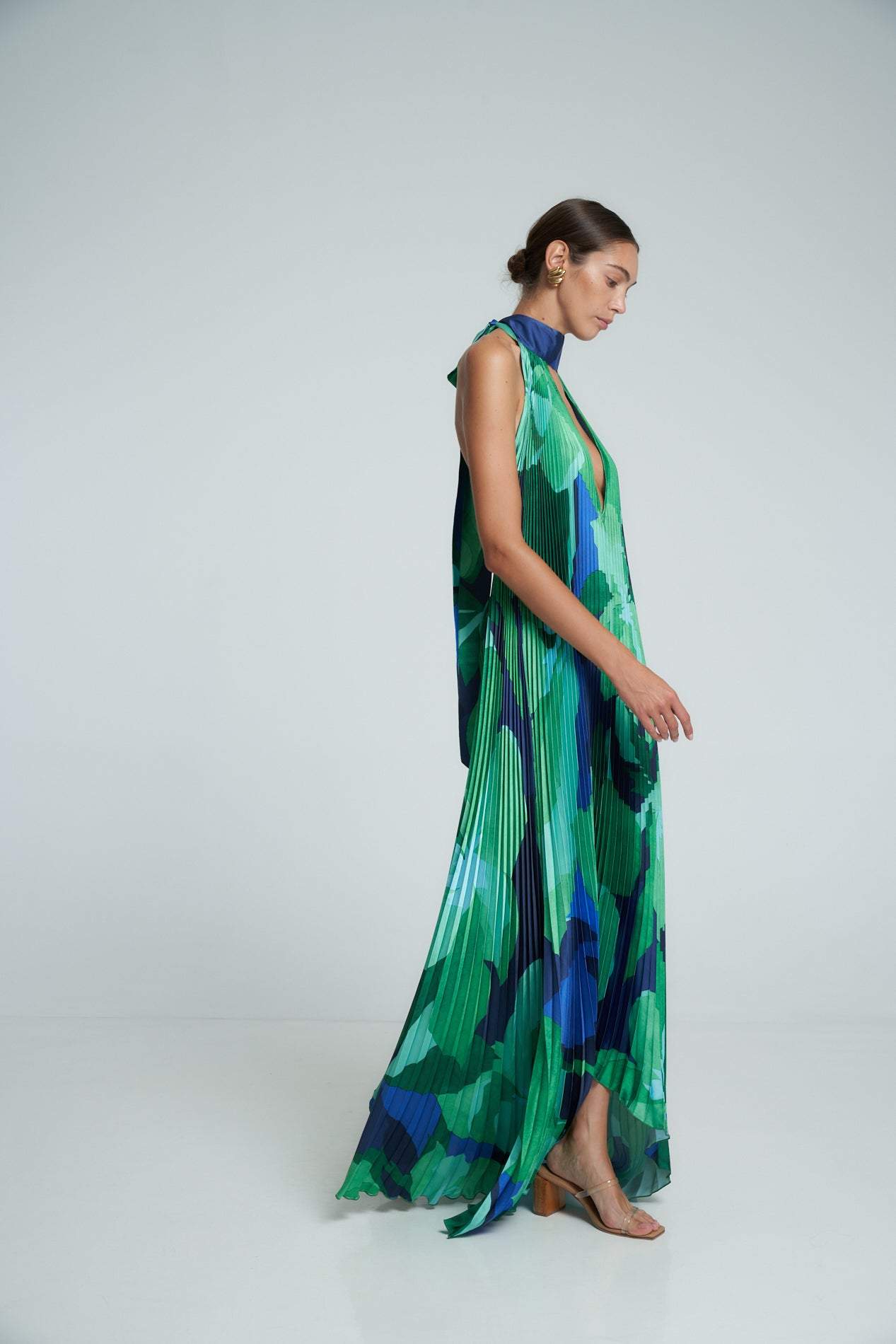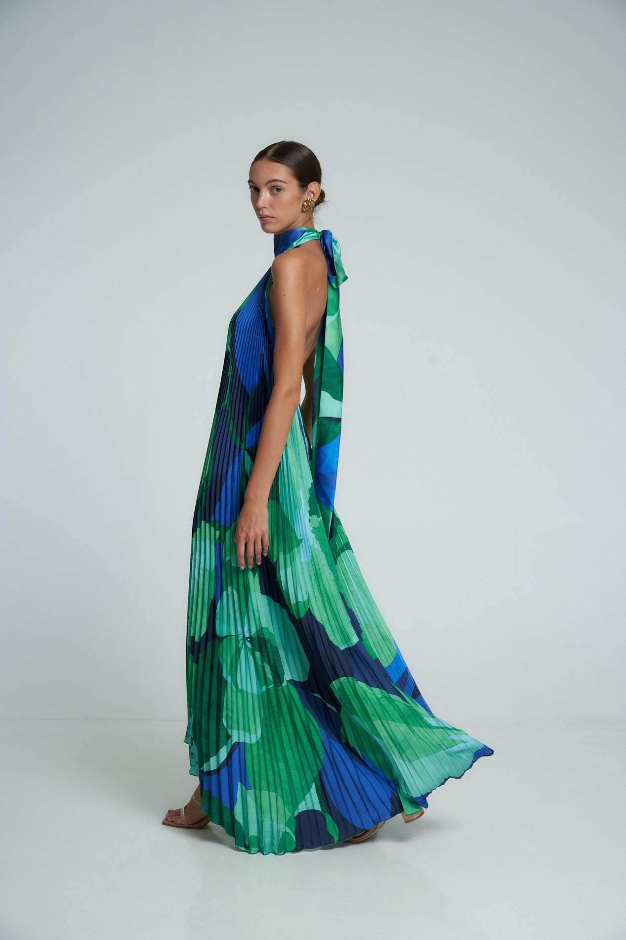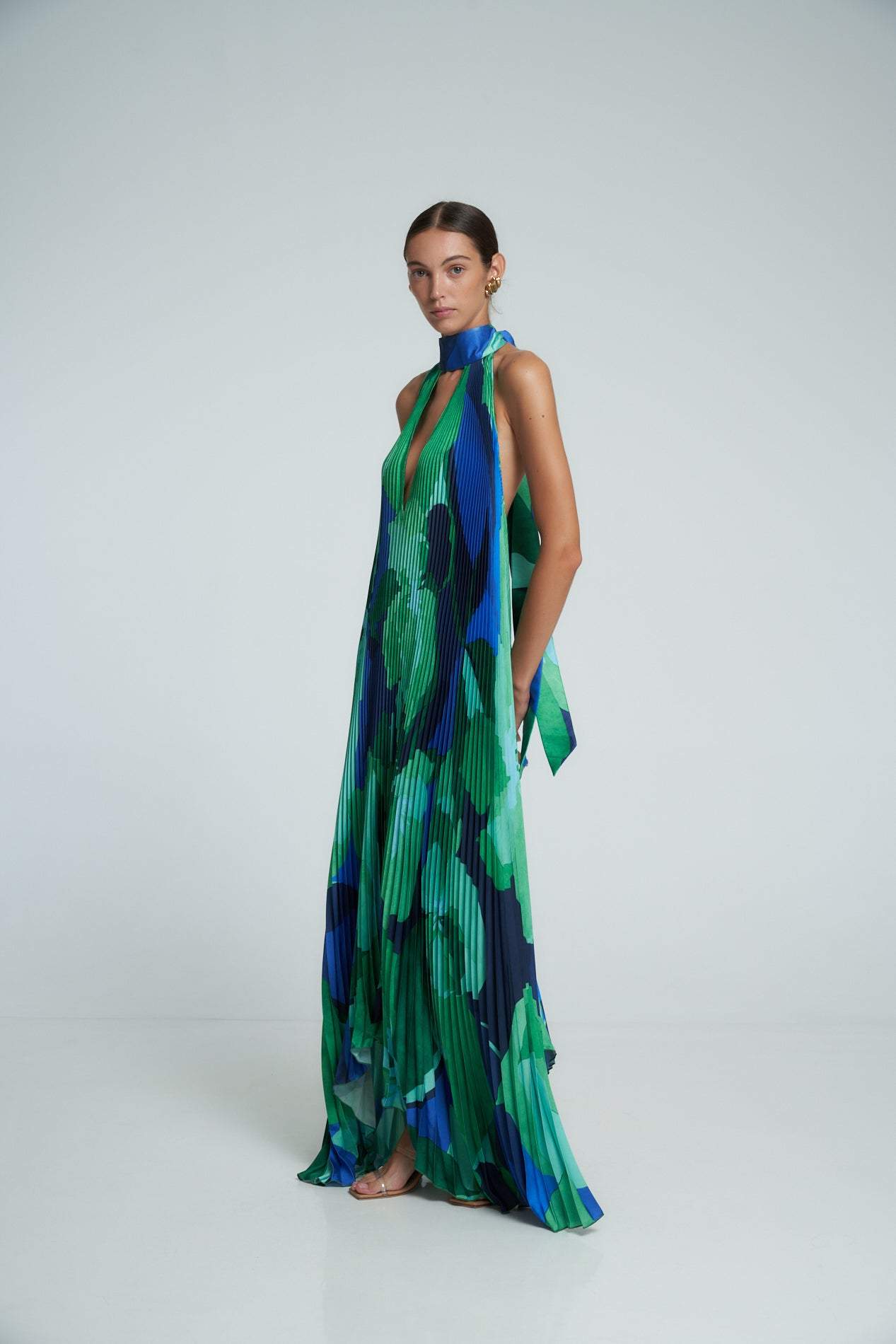 Pamela Baskılı Plise Uzun Çadır Elbise