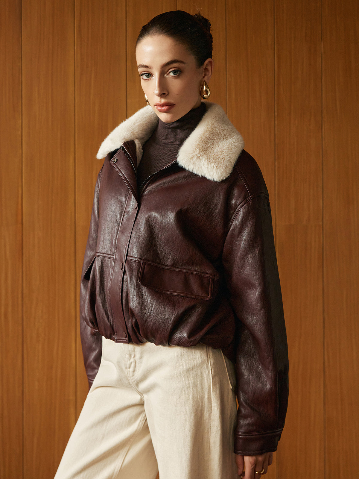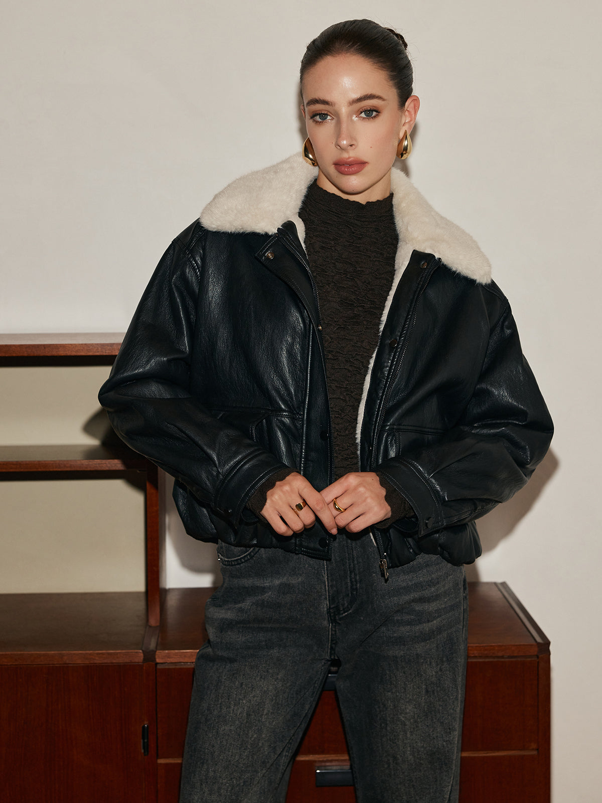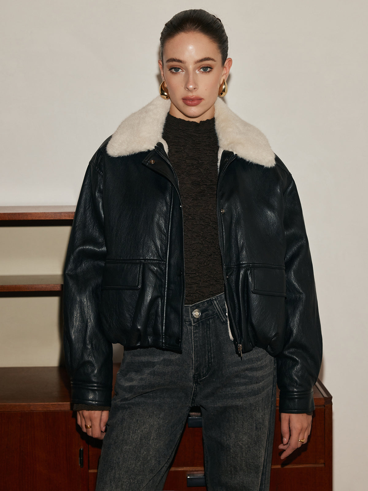 Polar Astarlı Suni Deri Fermuarlı Kaban